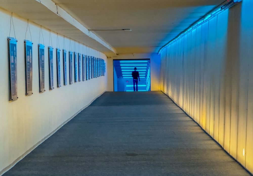 Oklahoma City underground . This is a series of tunnels and skywalks that connect a large part of the downtown buildings and parking garages. The tunnels are distinguished by different color lighting (fluorescents!) and some of the walls are lined with historical photographs. It was not as visually interesting as I might have hoped. I’m sure it is appreciated in inclement weather.