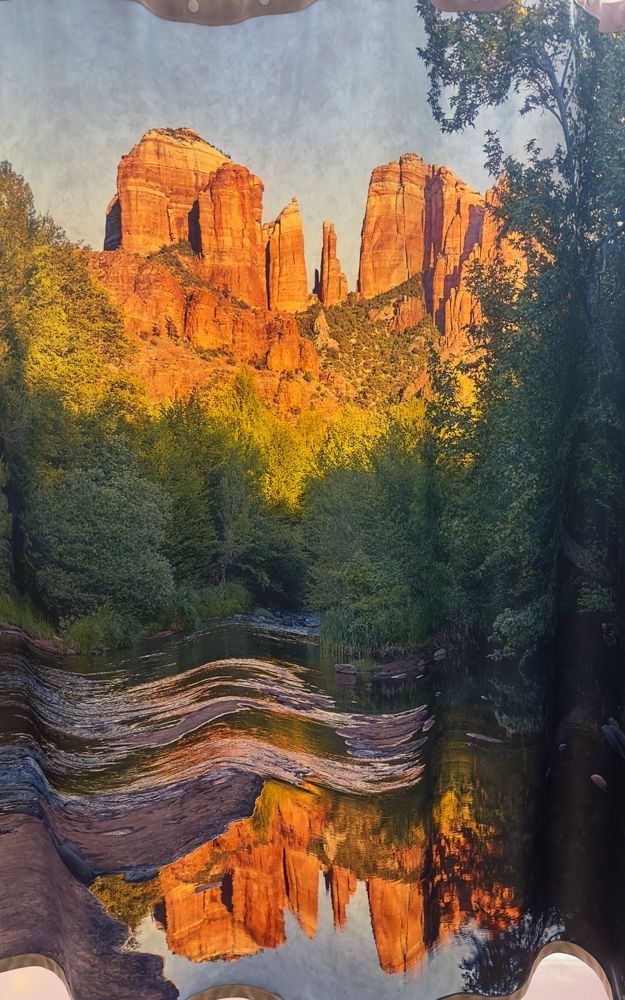 The curtains in the hospital were all made from nature scenes, presumably from around New Mexico. We are guessing this might be in the Gila WIlderness, but the jury is still out. Actually a pretty nice idea to brighten up a hospital room.