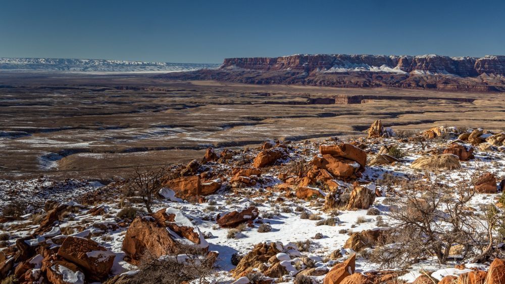 Scenic view point looking toward the North Rim of the Grand Canyon after crossing into Utah