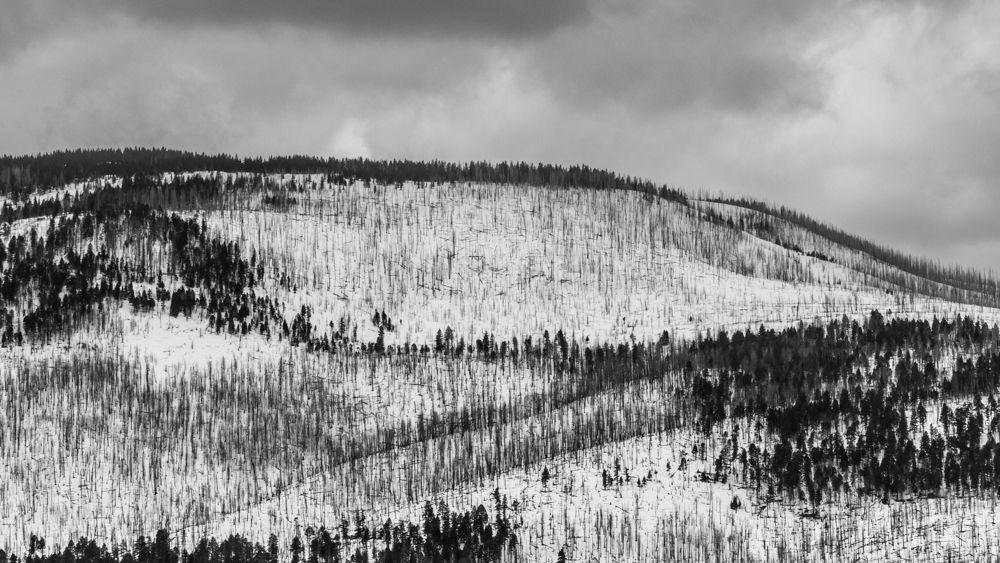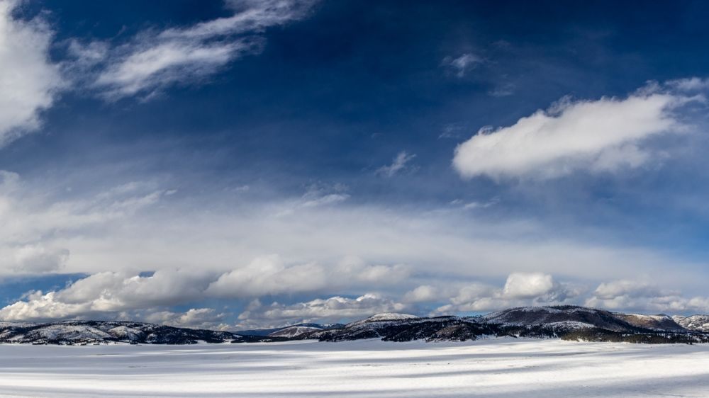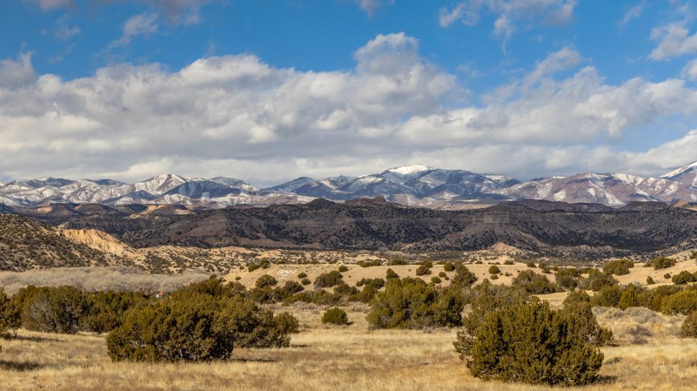 I then headed to Valles Caldera National preserve , immediately adjacent to Bandolier. About 1.25 million years ago (reports vary, some putting the event at 1.6 million years ago, but still relatively recent), a spectacular volcanic eruption created the 13-mile wide circular depression now known as the Valles Caldera. Why is it that many of the interesting sites require navigating a steep windy road to get there? As soon as I turned onto the road to the park, I knew that I would not get very far. It had been plowed at some point, but was covered with snow and ice. I drove the two miles to the visitor center just to see what might be available. Basically all of the rest of the road to various sites around the Caldera were closed, and unless I wanted to rent snowshoes, there was not much more I could do. I would have been happy to try the snowshoes had I arrived earlier in the day, but at 3 PM, but with the preserve closing at 5 and sunset around 5:30 I passed. I was able to stop at a number of pullouts along the highway that allowed views of the Caldera.