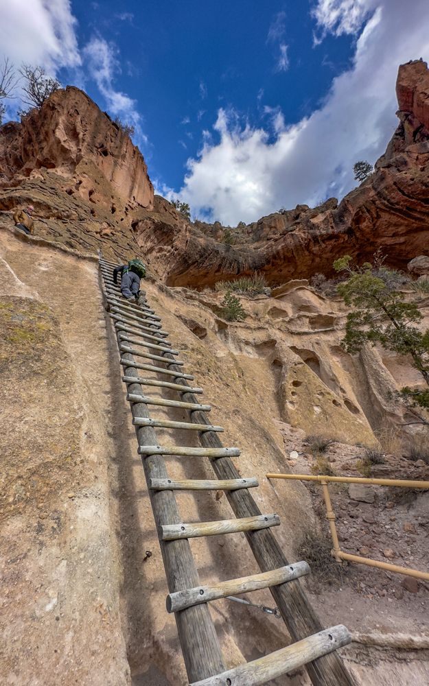 I spent most of the day exploring Bandolier National Monument , a convenient half hour from Santa Fe. According to the FAQ on the website , Bandolier is one of three areas historically inhabited by the Pueblo people. Mesa Verde, Chaco Canyon and Bandolier were all sites occupied by people of the Ancestral Pueblo culture, but during different time periods. Mesa Verde: A.D.500-1300 Chaco: A.D. 500-1300 Bandelier: A. D. 1100-1550 . During these centuries there was trade and exchange of ideas and migration occurred between these areas.