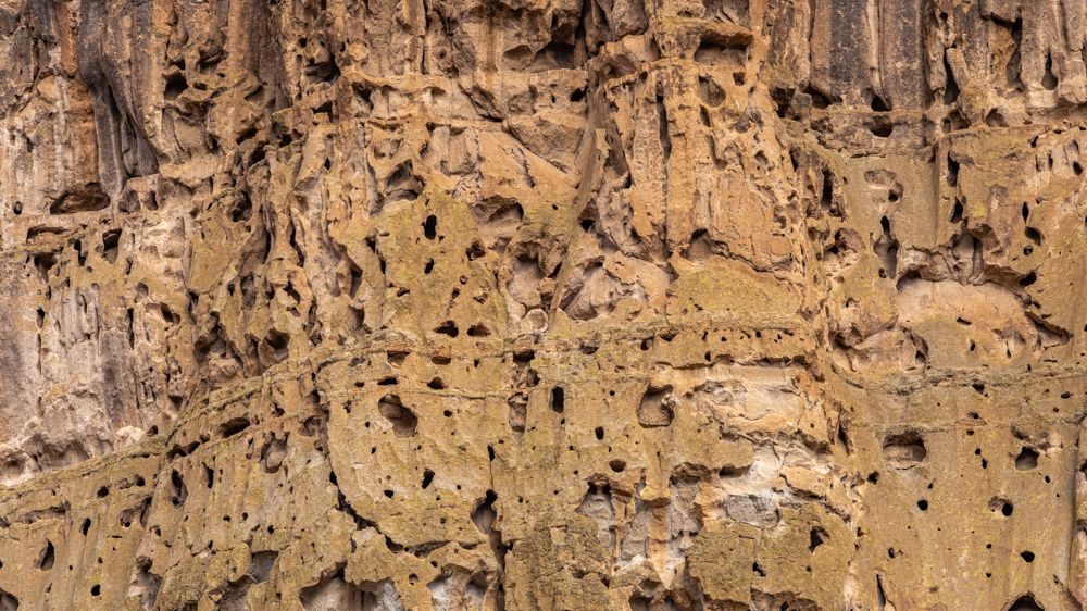 Pink sandstone rocks that form the wall of the canyon where cliff dwellings are found
