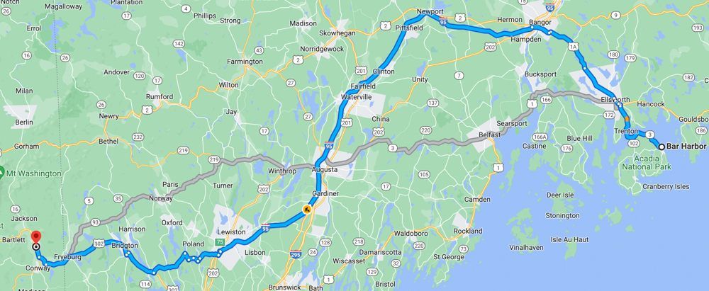 Bar Harbor to North Conway (I was amused to pass the Poland Springs water bottling plant on the way. I never realized it came from NH)
