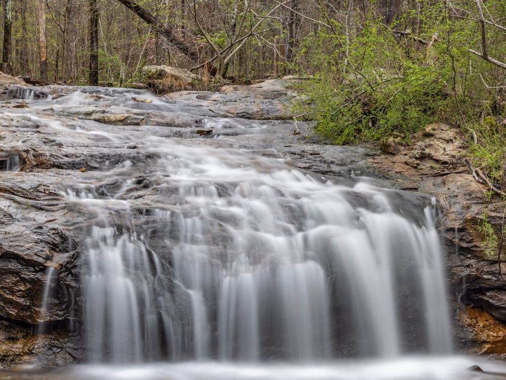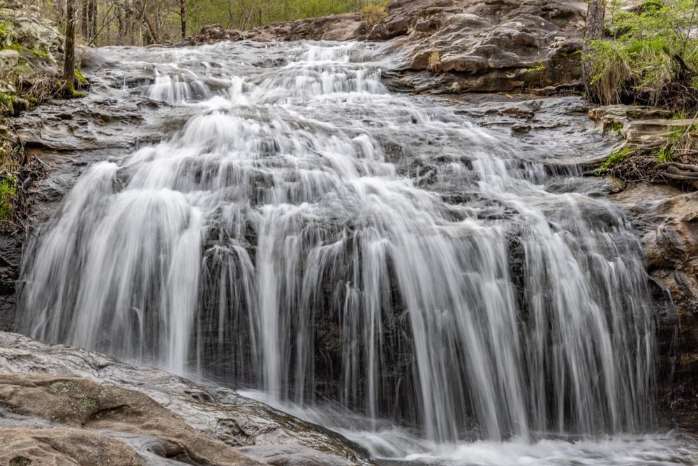 Although the skies remained cloudy, the rain let up in the afternoon and I was able to take a short outing to Moss Rock Preserve [http://www.hooveral.org/214/Moss-Rock-Preserve]. This is a beautiful little gem of an area, only about 20 minutes out of downtown Birmingham. Although not listed in any of the usual travel advisories, it is clearly popular with the locals as many families were out appreciating the break in the rain. A main feature of this preserve are the waterfalls. Although I never made it up to the upper falls (they trail system was not well marked), I still got some nice images of the lower falls.
