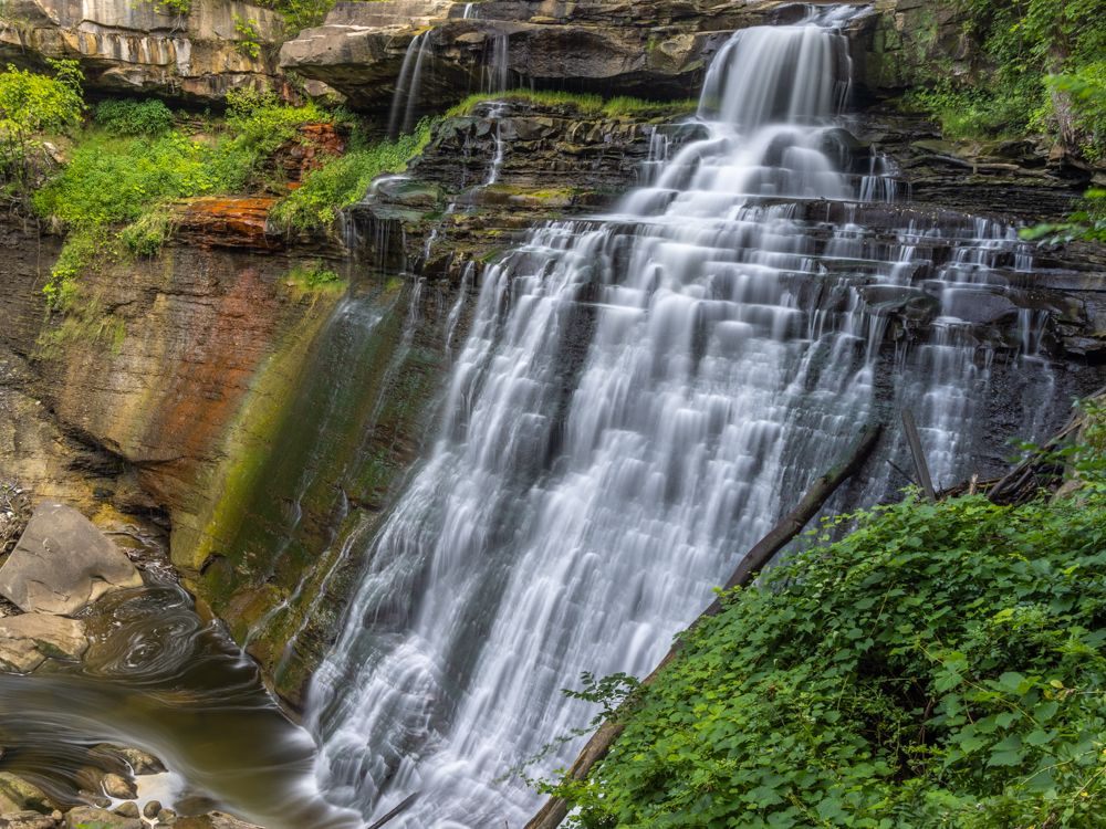 Cuyahoga National Park before checking into my hotel in downtown Cleveland. In spite of many people enjoying the park on a hot Saturday afternoon, I was able to capture a few images of the falls. Although a few daring souls had found a way to get to both the top and bottom of the falls, they are mostly inaccessible, so a few moments of waiting provided an opportunity to photograph them without people.