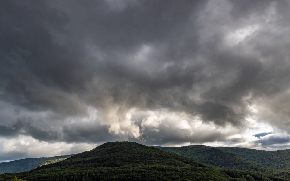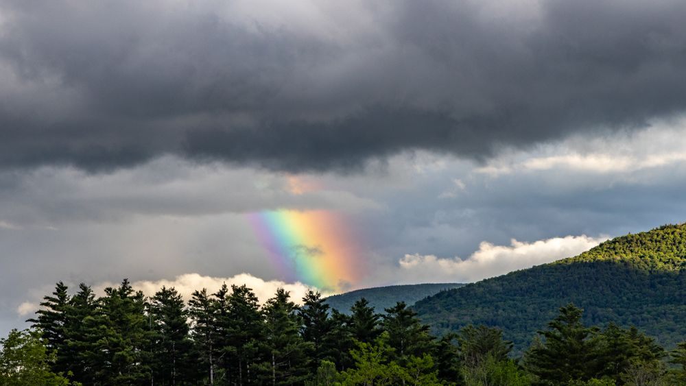 The day ended nicely with a rainbow. I was out on my deck photographing dramatic clouds over the mountains when my neighbors, Matt and Catherine, drew my attention to a rainbow over to the side. That was a nice extra to conclude my short stay in the Catskills.