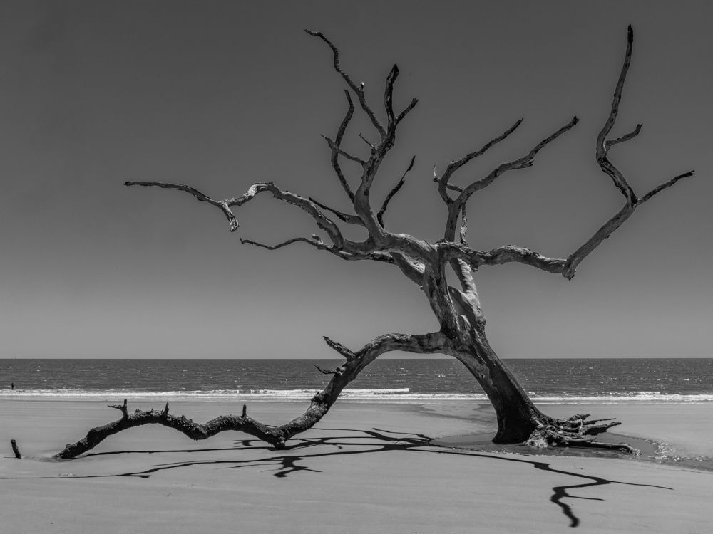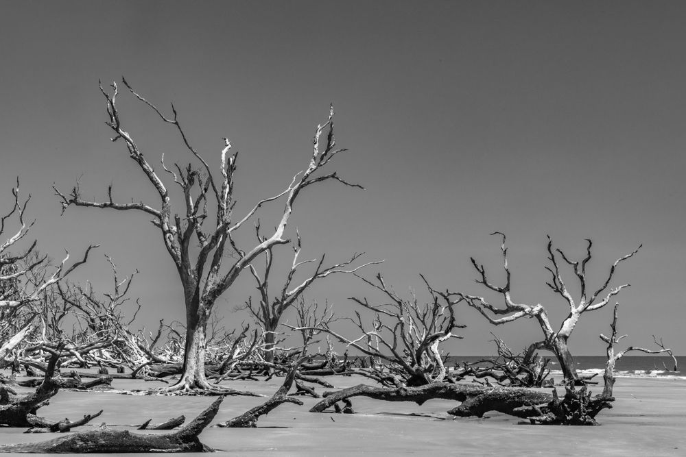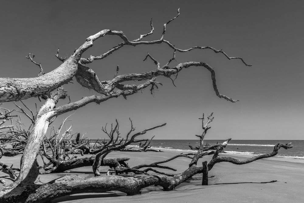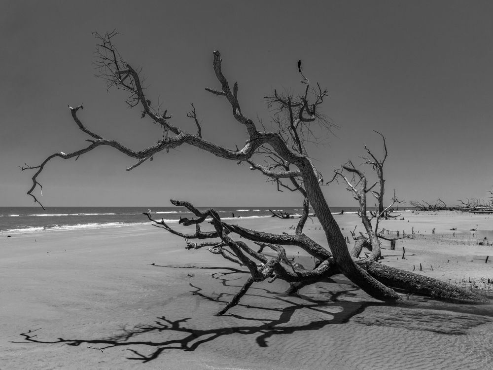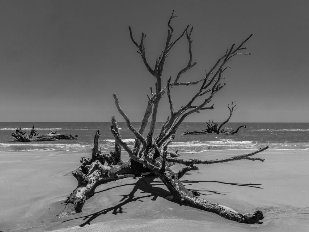 One of the main attractions of Bulls Island is the bone yard, a stretch of beach that hosts a driftwood forest. I spent a couple of hours just on this beach trying to capture the dead trees. Unfortunately, low tide was at 2:30 PM, so the light was harsh. I decided to make light-ade by converting these images to black and white. See what you think.