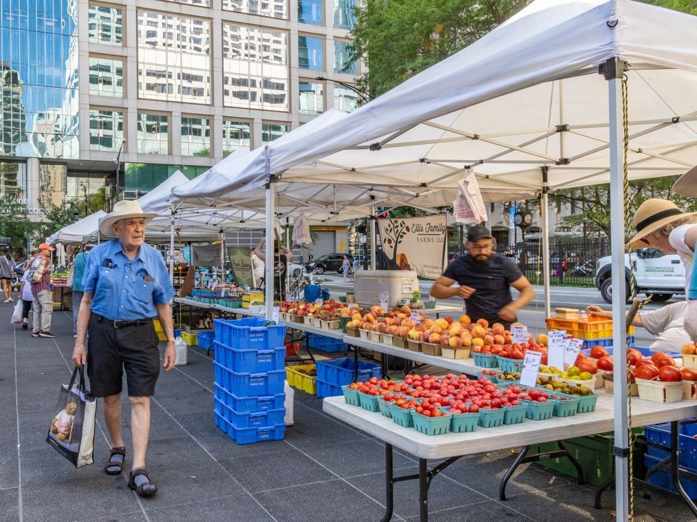 Museum of Contemporary Art . A weekly farmers market was set up on the terrace just outside the museum, which provided some interesting material. On the top floor of the museum was an exhibition by Gary Simmons, an artist from Los Angeles. I continued on to the