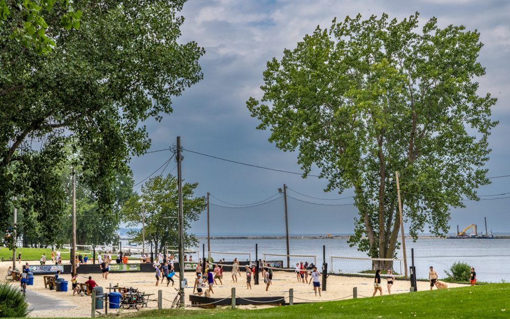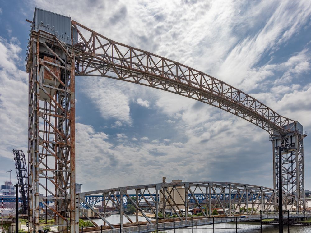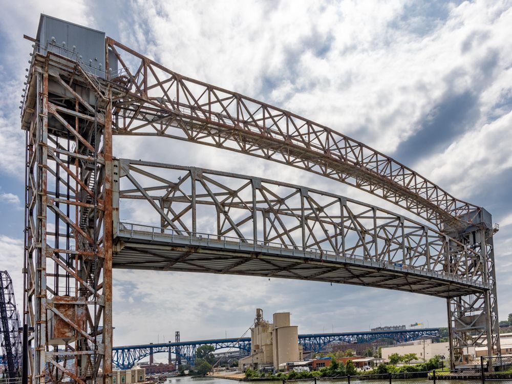 From the West Bank of the Flats, I continued through a very industrial area to cross the Willow Avenue drawbridge to Whisky Island (actually a peninsula). During the time I was walking around, I had the opportunity to see it raised and lowered several times. It is unusual in that the entire roadway lifts up using pulleys, rather than the bridge breaking in the middle. The waterfront along Lake Erie has been developed nicely into a series of parks and a casual venue called The Whiskey Island Still and Eatery , that also features live music. I walked over to get a drink and saw that a large crowd had gathered at outdoor tables to hear a band. Everyone seemed to be enjoying a mellow Sunday afternoon.