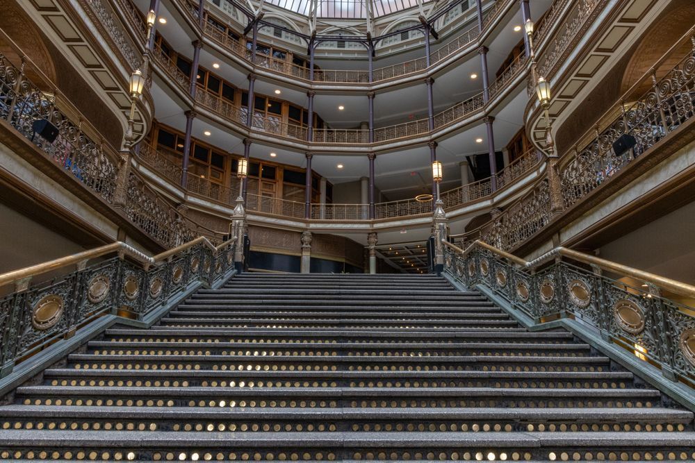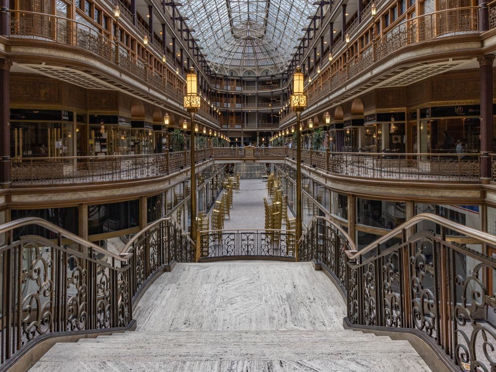 Today I visited several different neighborhoods in Cleveland. At the recommendation of Samanthia from the front desk, I first walked a few blocks to the historic district to visit to The Arcade , a Victorian era structure originally erected in 1890. This was well worthwhile as the architecture is magnificent. It now houses a hotel and shops, but fortunately they have not destroyed the ambiance.