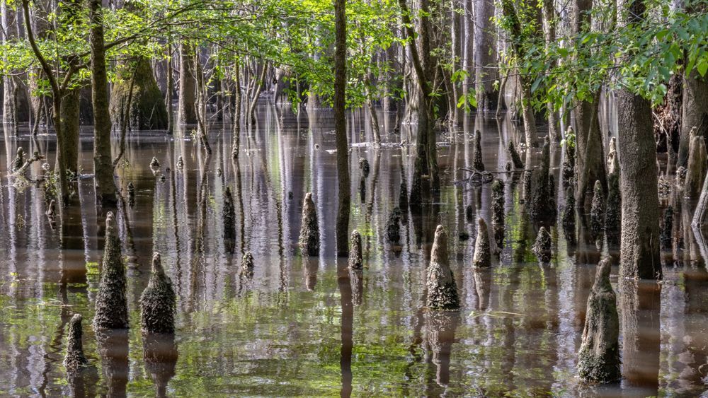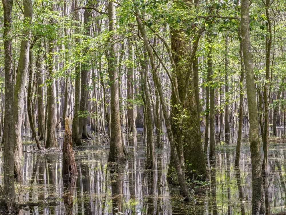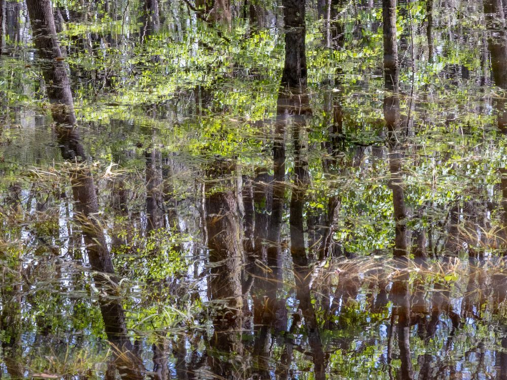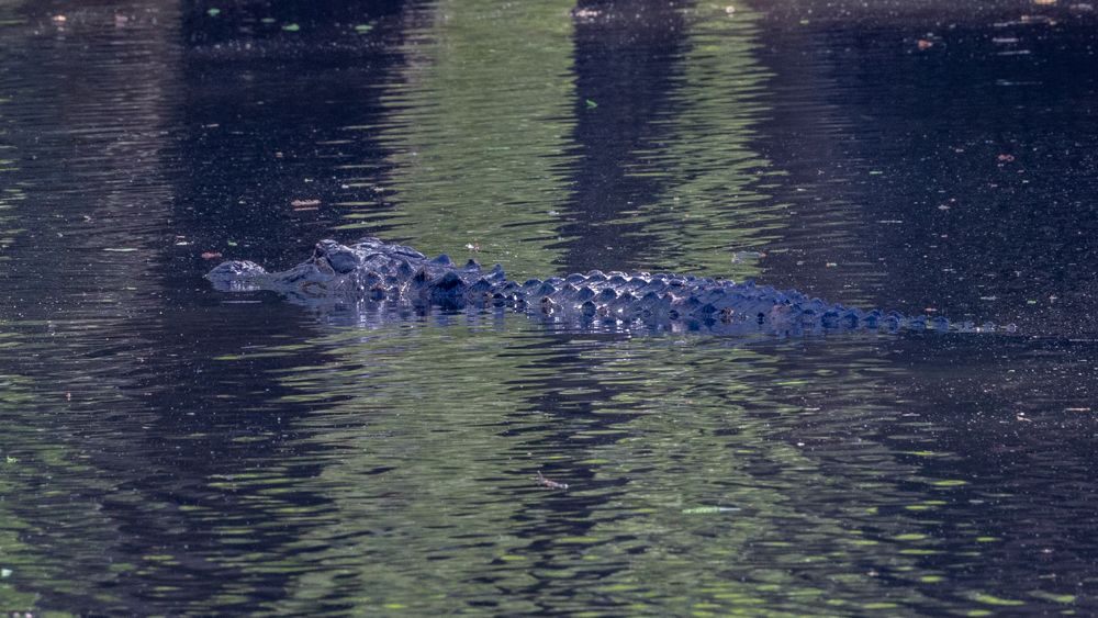 Congaree National Park , which is only about a half our outside of town. This National Park is open 24/7 and has no admission fees. The disappointment was that almost all of the trails were flooded and inaccessible. Only the boardwalk was accessible, and even a corner portion of that was under water. Well, when you are given water, make reflections. And I did find an alligator in the lake at the very end of the boardwalk.