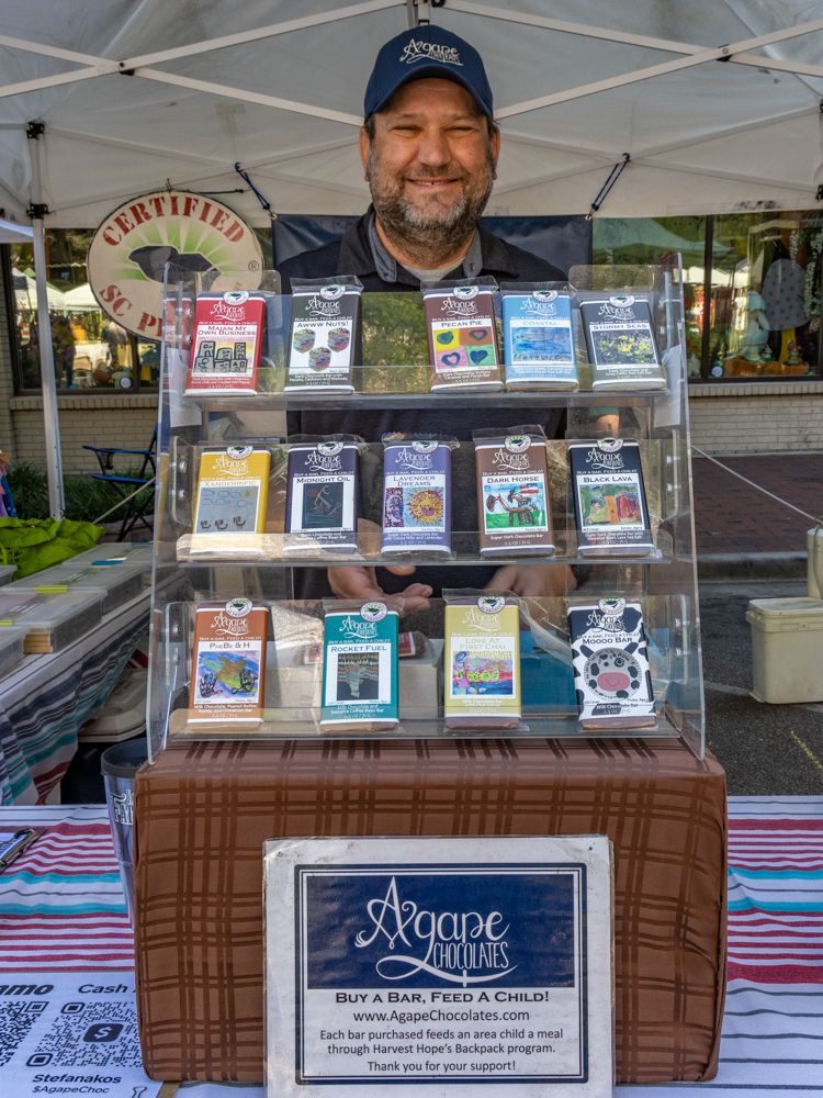 Agape Chocolates . I loved this business for more than the handmade chocolate. The art on packaging of the various bars is all made by his children, and one even is a tribute to his mother. Even better, a portion of the proceeds from each sale goes to combat childhood hunger in the local area. How could I not purchase a few bars?