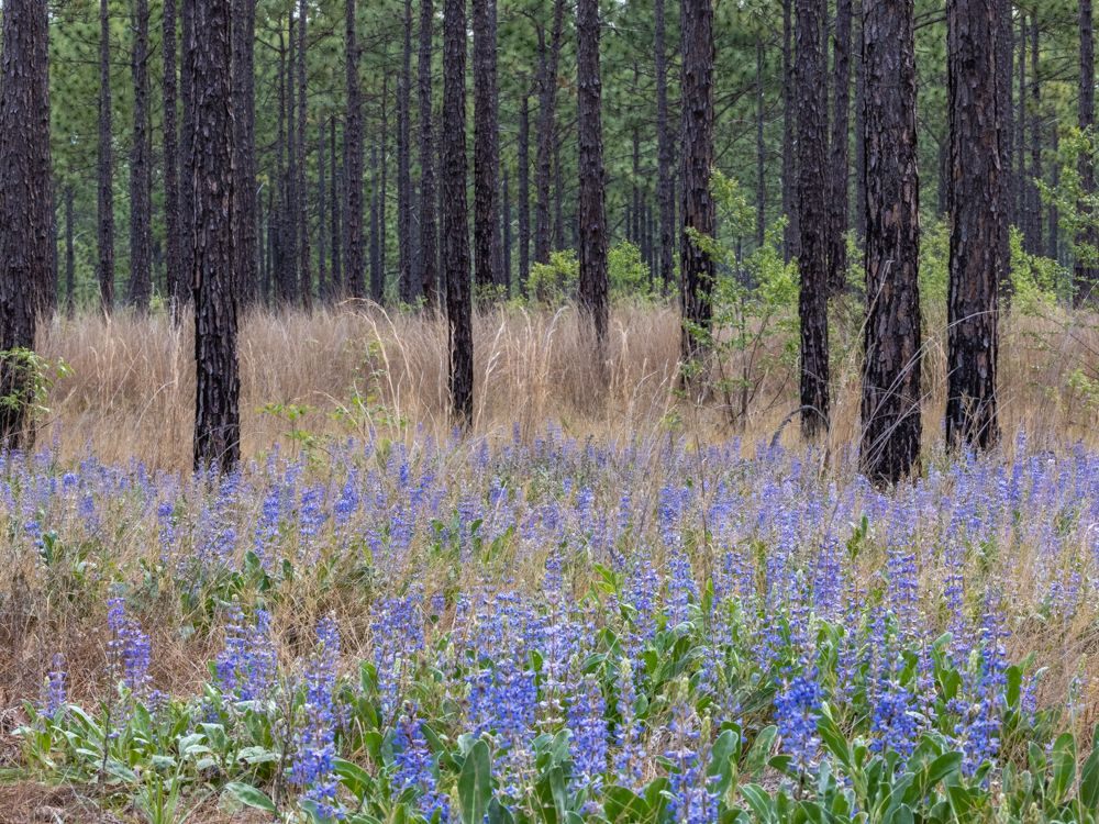 Lupine and long-leaf pine trees, South Carolina Sandhills NWR