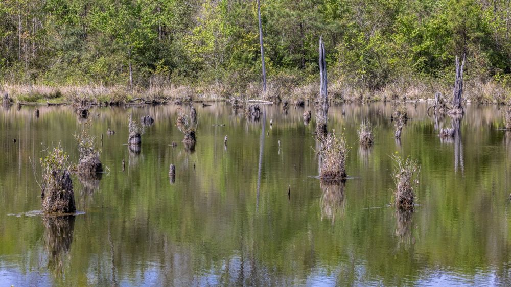 Stumps in a pond putting out new growth, South Carolina Sandhills NWR