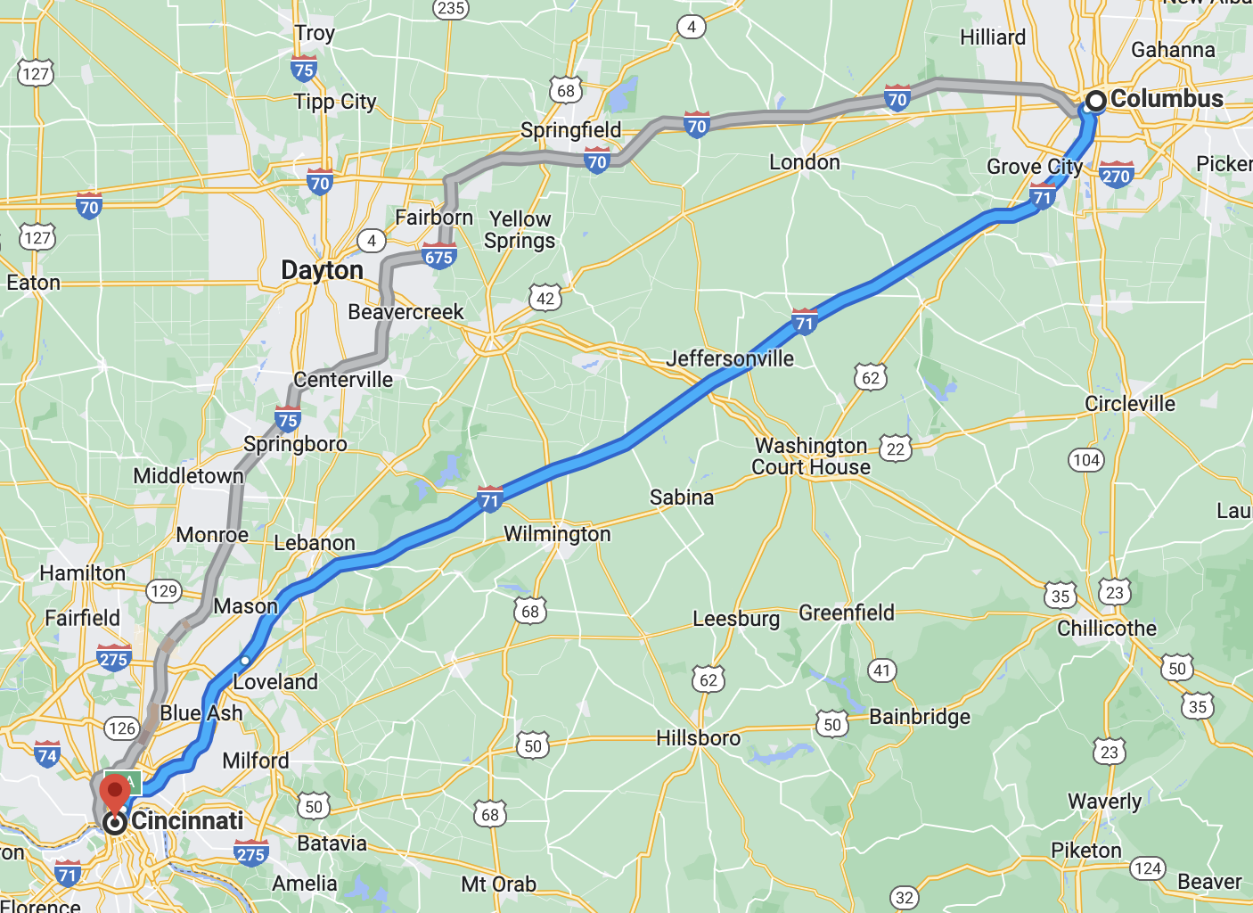 This morning I drove to the Southernmost city in Ohio, Cincinnati. Just across the Ohio River, and connected by several bridges, is Kentucky.