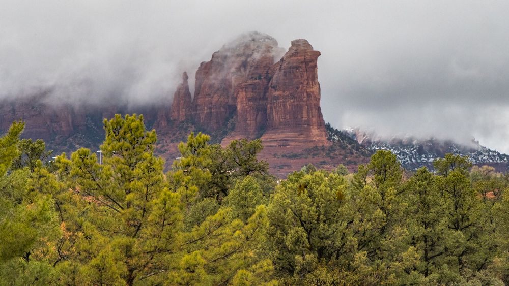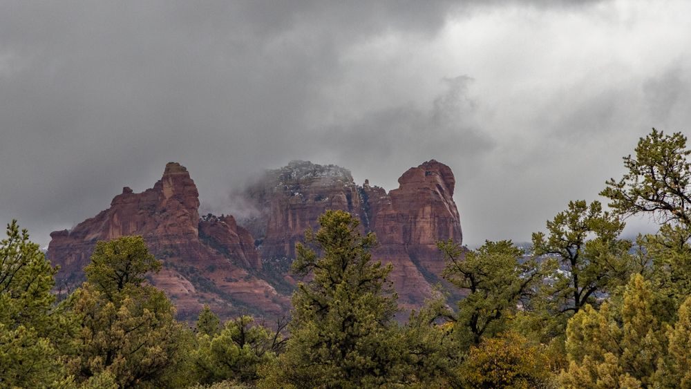 While some delays were reported due to crashes, the roads to Sedona had been plowed, at least to clear a single lane. Progress was slow, mostly due to the trucks who had to proceed very slowly due to the continuing hazardous driving conditions. We had mixed precipitation the entire time, ranging from snow to sleet to rain. There were areas of high winds, as well as portions of the drive that were practically white-outs. Think an entire line of cars creeping along, all with their hazard lights on. The median and shoulders were littered with vehicles whose owners had apparently made some poor decisions.