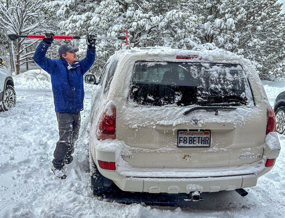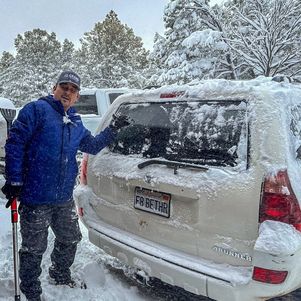 We did get a significant dump, but I would estimate it at about six inches of light powder. The staff at the Yavapai Lodge were at work at first light plowing the roads and parking lots. The staff even helped us remove the snow from our cars! Jeff was working in our parking lot and he could not have been nicer or more helpful. Lucy II made short work of the small drift piled up by the snow plows. Once the front windshield had been cleared, I drove her right out of the parking space, no problem. She did request, however, that I pick up a shovel and scraper as I still have Utah, Colorado and New Mexico to contend with. Duh. You would never know that I lived in Boston for six years, you would have thought I was a driving-in-snow novice. I will add an extra pair of warm winter gloves to that list. Then I can add them to the several existing pairs in my drawer at home.
