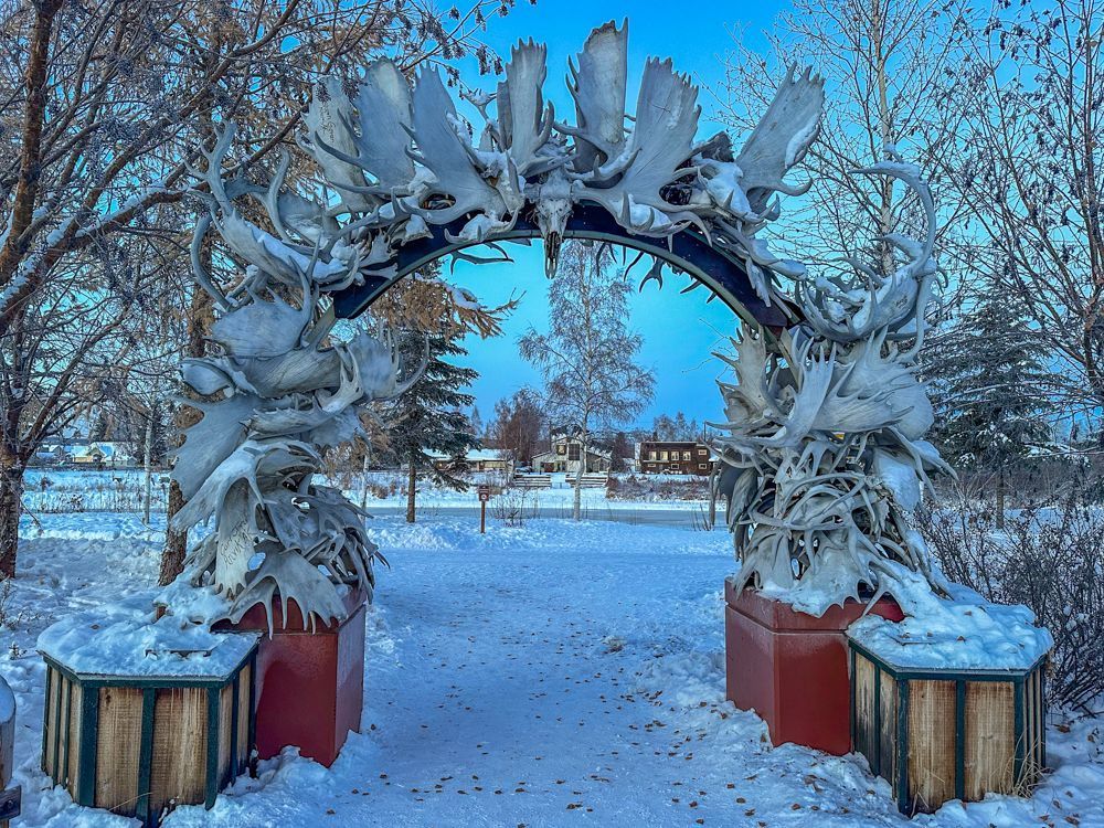 Morris Thompson cultural and visitor center close to my hotel. They had some nice displays about life in Alaska and highlighted some local personalities of note. I walked down to the Chena River to see if I could find a place to photograph any aurora that might be visible tonight. Two elements are important for good viewing, clear skies and high activity. All week the highest activity was forecast for today. Last night we had a nice surprise of higher than expected activity, but a few clouds marred the images. Today was crystal clear. Like last night, a high period of activity was expected around 9 PM. I hoped to go out and take some urban shots of the aurora over the Chena river.