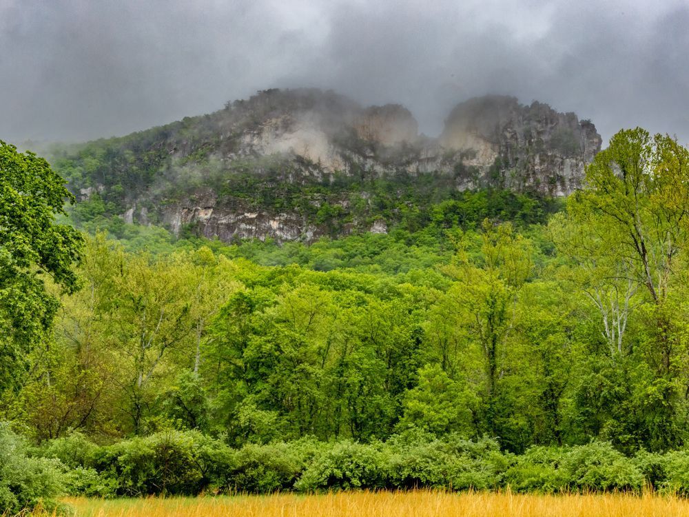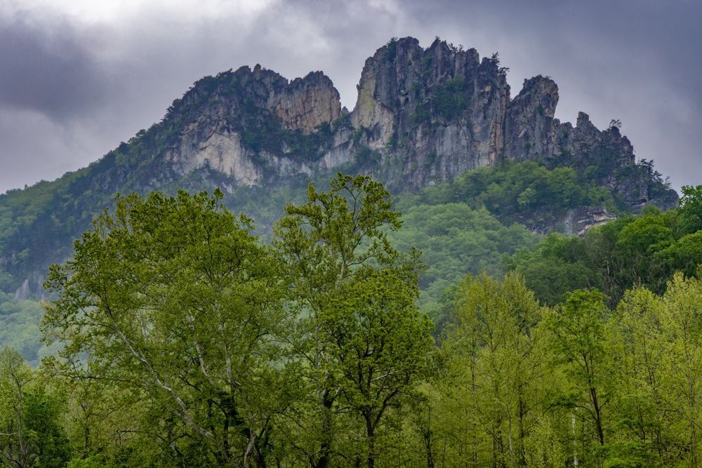 I did take the opportunity to stop at Seneca Rocks on the way. This property is operated by the Forest Service and is apparently one of the most well-known landmarks in West Virginia (although obviously I was oblivious until recently). Rain was predicted for the entire day, and, for once the weather forecast was accurate. A 2.6 mile trail (out and back) takes you up about 700 ft. to a viewing platform. Unfortunately, at the time that I reached the top, the mist had settled in the valley to produce white-out conditions. So no spectacular views of the valley, but some nice soft images of lichen covered rocks and dense forest. It was worth the hike in the rain.