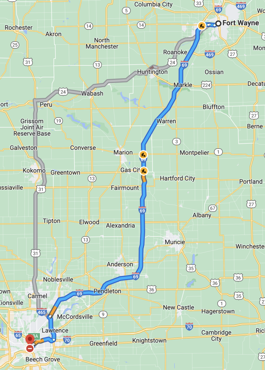 Fort Wayne to Indianapolis (the map refuses to show the name)