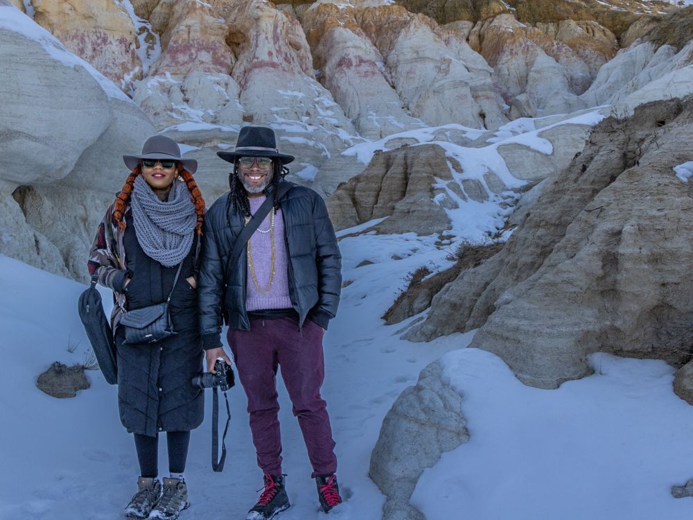 As I was walking back I ran into the only other humans who had decided to visit the area this afternoon, Angel and Goodwill. Angel lives in Colorado Springs, Goodwill was visiting from New York. He is a graphic designer, photographer and D.J. And they both were just really cool people. We had a nice chat and took each others photos against one of the rock formations.