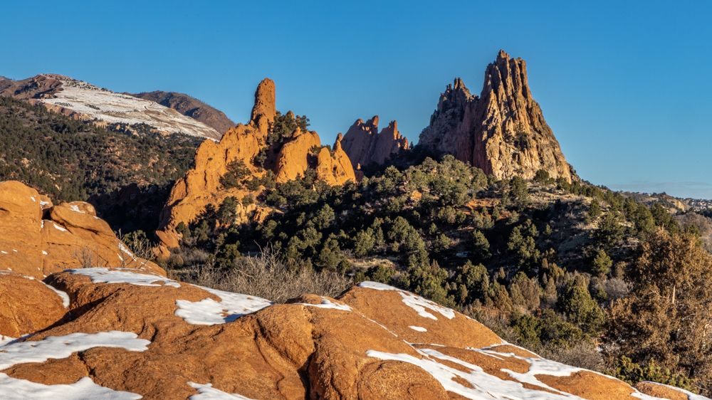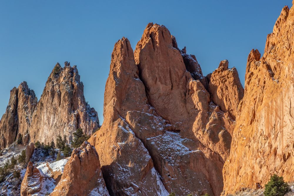 I started the day with an early morning return to Garden of the Gods . Like all areas with tall rock formations, there is a morning side and an afternoon side. I tried to capture some of the areas that were in shadow the previous afternoon.