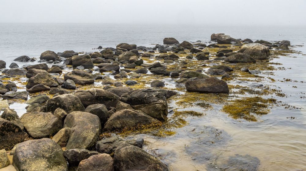 Based on Faith’s recommendation I drove over to Water Street in Stonington , which is one of those cute streets with boutiques, antique stores and a few eateries. I walked up and down the street and also out to the beach and pier. The fog made for a moody backdrop to the rocky outcroppings and boats.