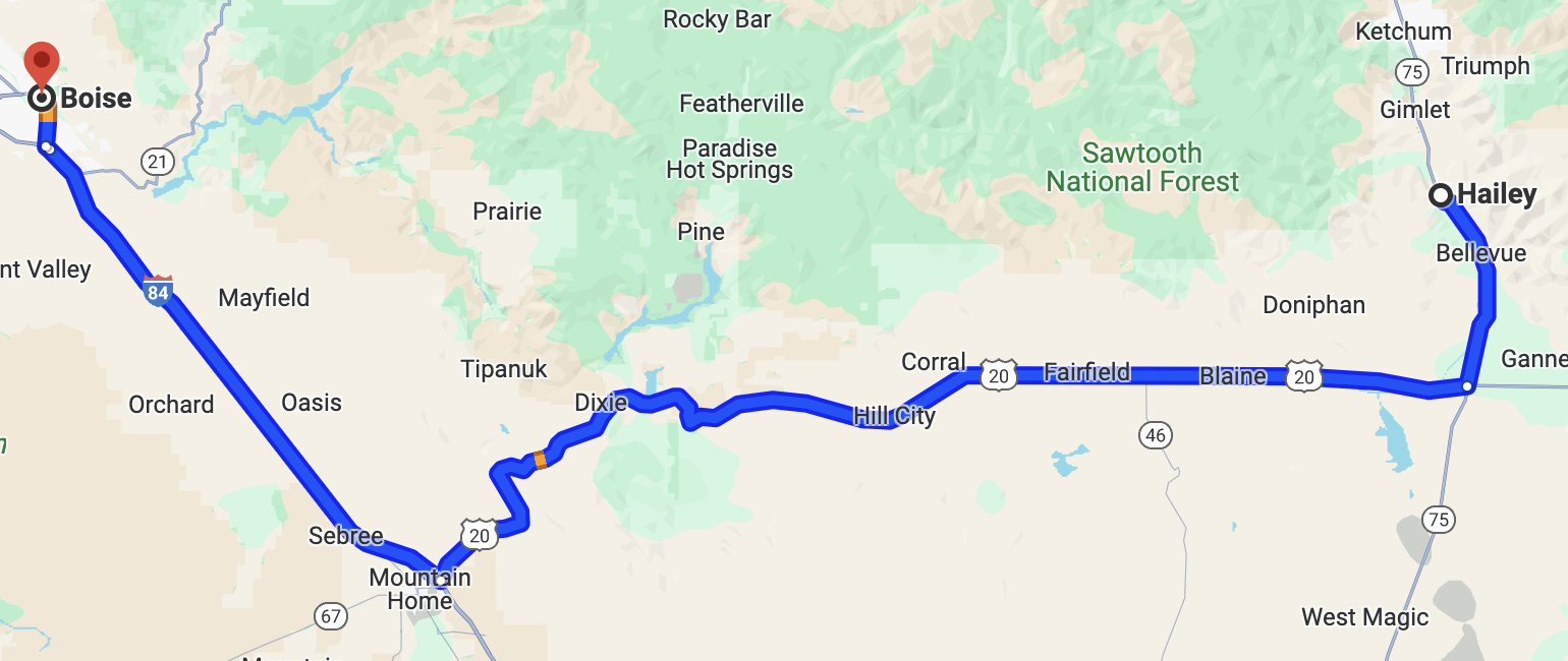 This morning I continued west, driving from Hailey to Boise. There has actually been some light snow and driving over the pass felt hazardous enough that I slowed down and put on my 4-wheel drive. It might not have been necessary - I had a lot of annoyed drivers speeding past me - but it felt safer to me. Oh well, I arrived in one piece and and everyone else is welcome to pass at their own risk.