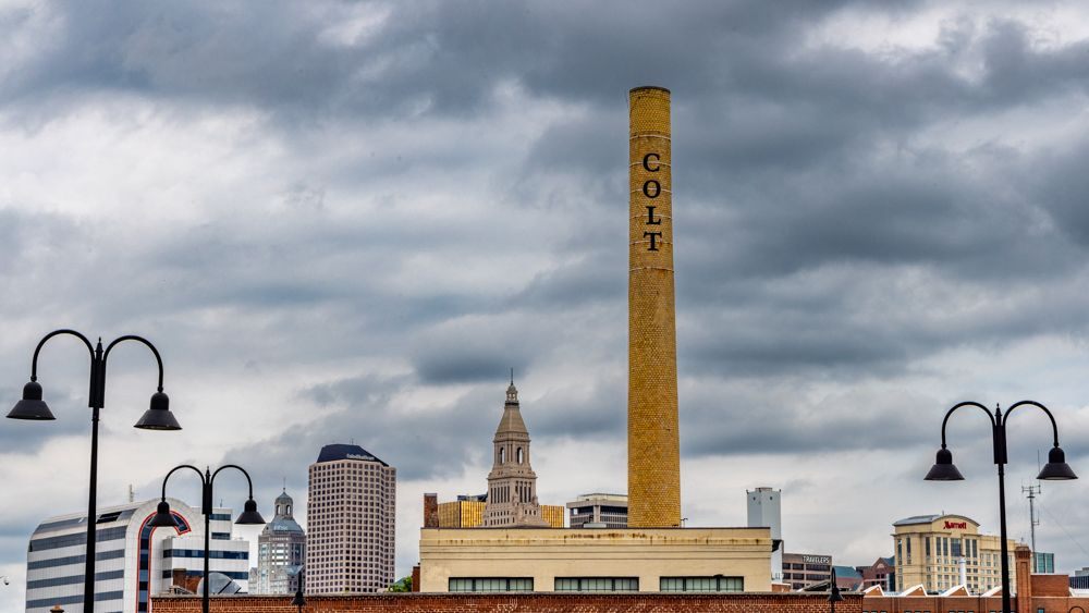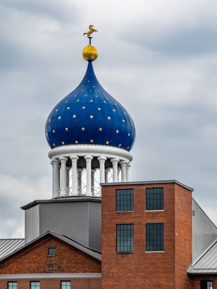 Colt armory dome topped with gilded ball and replica of the "rampant colt"