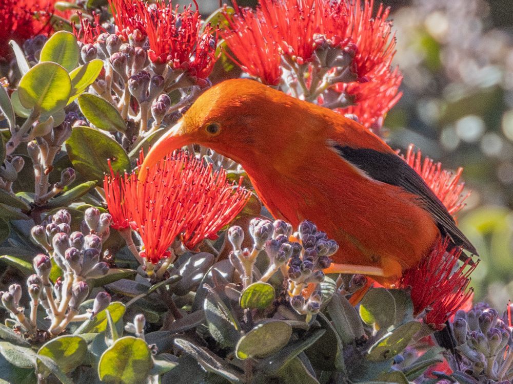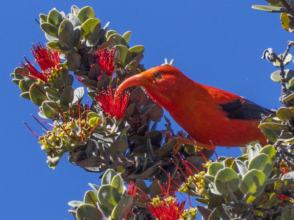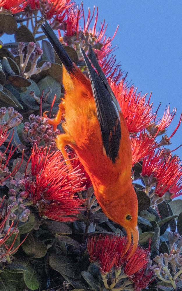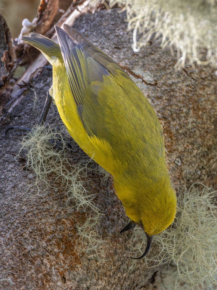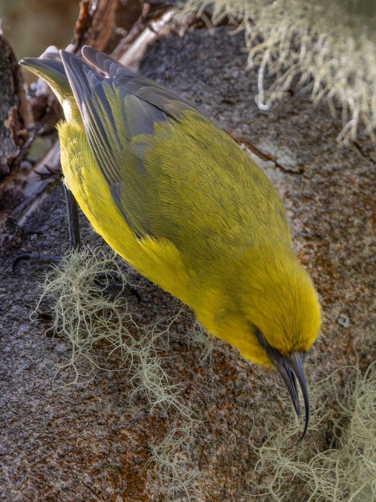 Our goal was to find and photograph as many species of Honeycreepers as possible. Honeycreepers are part of the finch family and are a prime example of “adaptive radiation”. In this phenomenon a single ancestral species evolves into a variety of new forms to fit different ecological niches. Honeycreepers evolved to take advantage of the many nectar producing flowers on the islands. In fact, there are no hummingbirds in Hawaii, and honeycreepers help to fill their role as pollinators. Several species of Honeycreepers are critically endangered, and others are considered threatened, due to loss of habitat, avian malaria and introduced predators. The Hakalau Forest National Wildlife Refuge provides critical habitat for these birds.