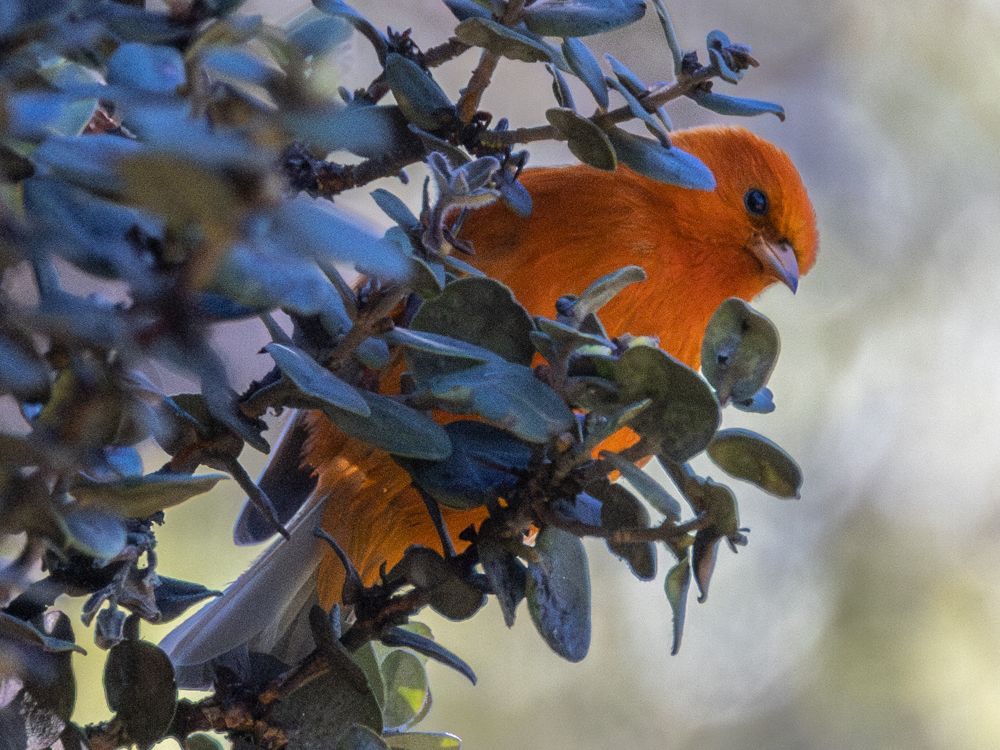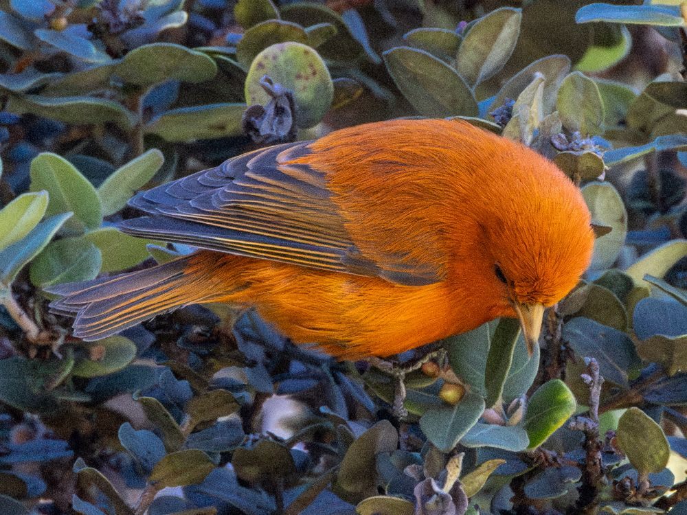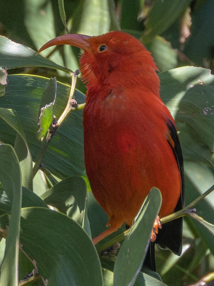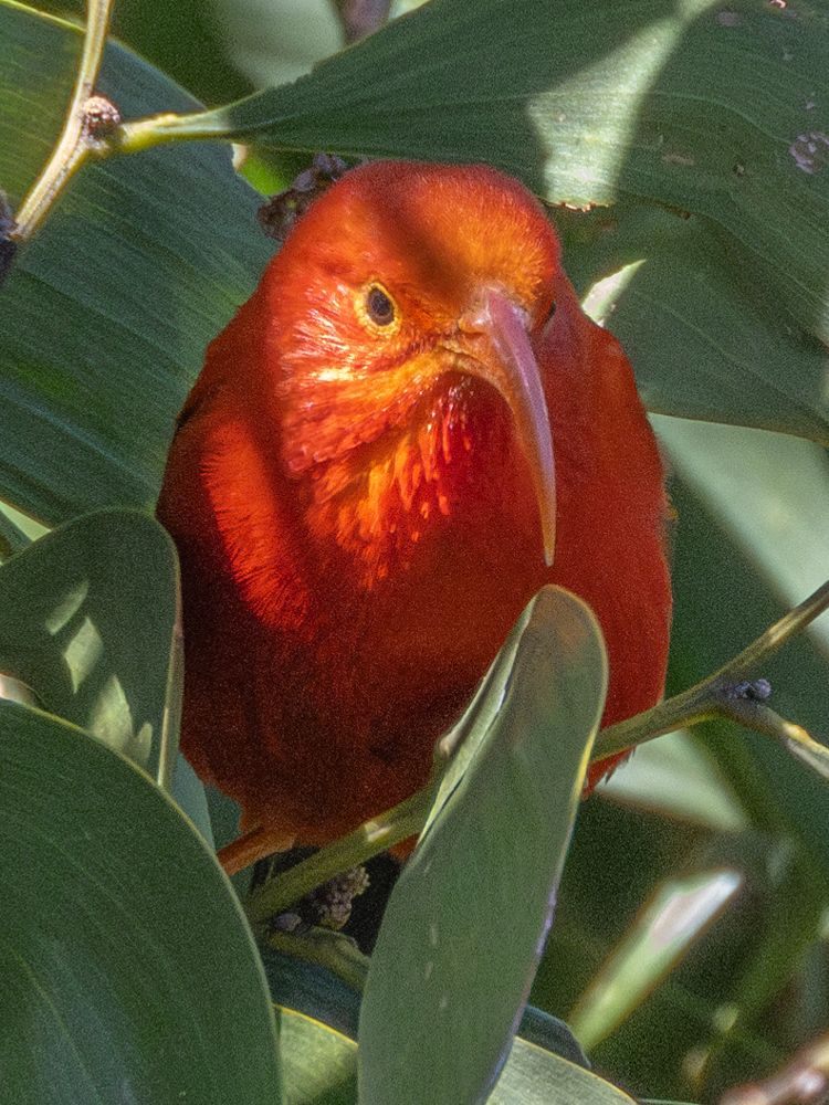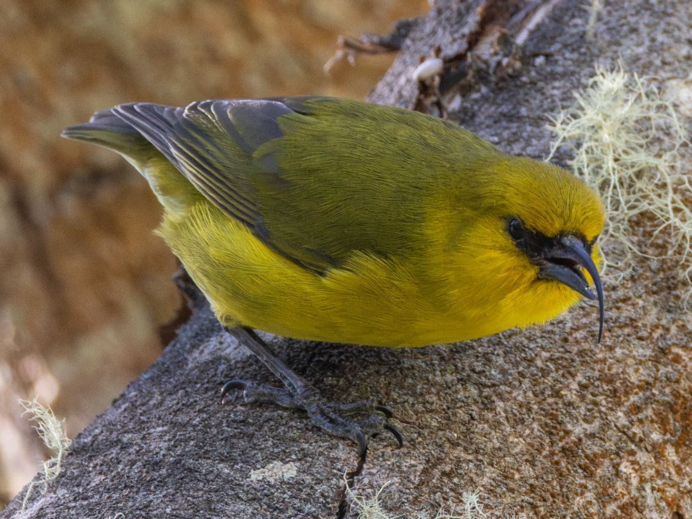 Our goal was to find and photograph as many species of Honeycreepers as possible. Honeycreepers are part of the finch family and are a prime example of “adaptive radiation”. In this phenomenon a single ancestral species evolves into a variety of new forms to fit different ecological niches. Honeycreepers evolved to take advantage of the many nectar producing flowers on the islands. In fact, there are no hummingbirds in Hawaii, and honeycreepers help to fill their role as pollinators. Several species of Honeycreepers are critically endangered, and others are considered threatened, due to loss of habitat, avian malaria and introduced predators. The Hakalau Forest National Wildlife Refuge provides critical habitat for these birds.