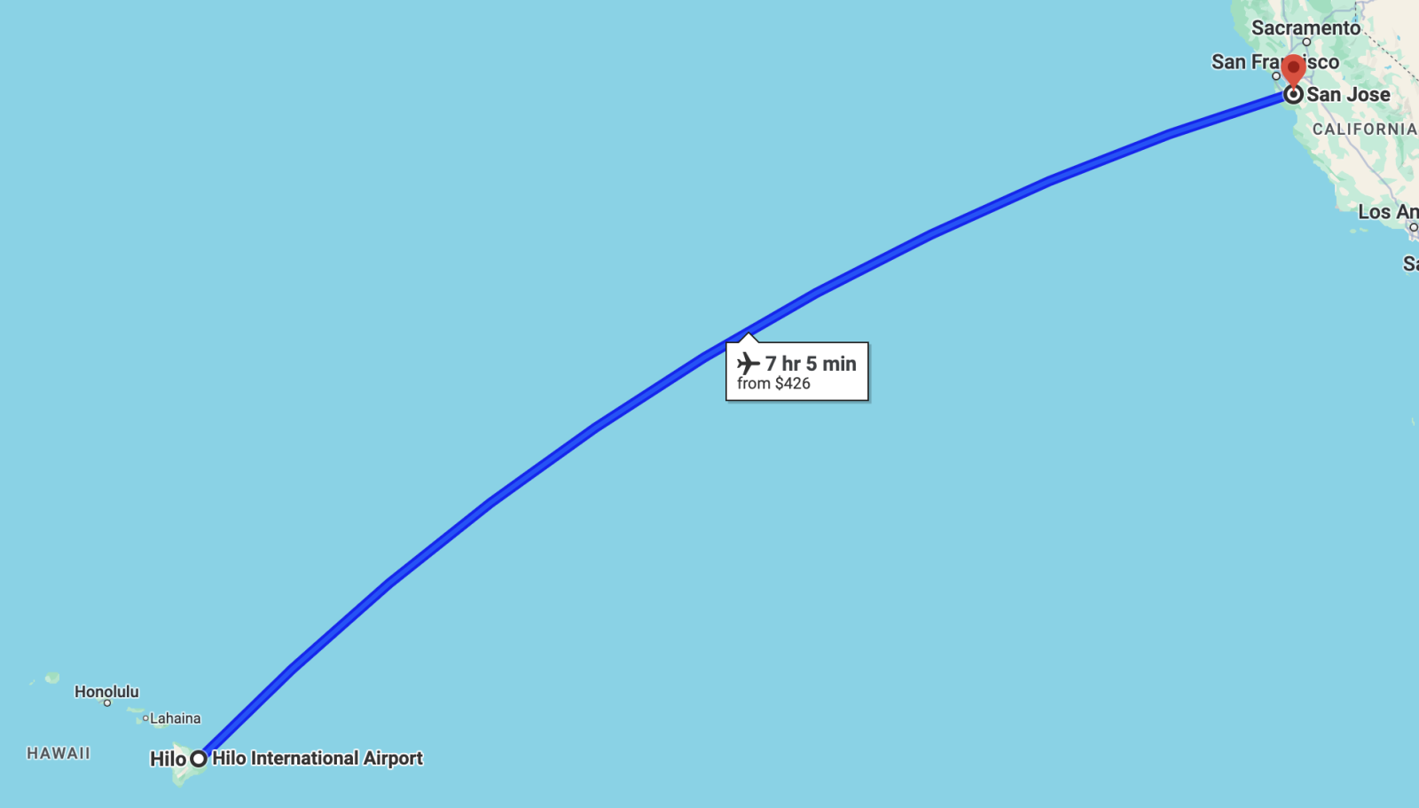 This morning I drove down the hill to the airport, turned in my car, and boarded the first leg of my flight back to SJC. The outbound flight had stopped in Maui, but the return went through HNL. Both flights were on time and everything went smoothly. However, because I lost two hours to the time change, I still arrived at SJC at 9:15 PM. I collected my luggage and grabbed a Lyft for the 15 minute ride home.