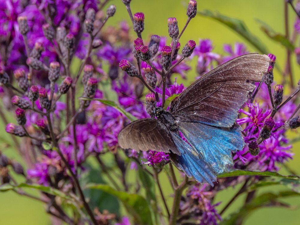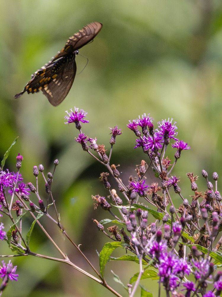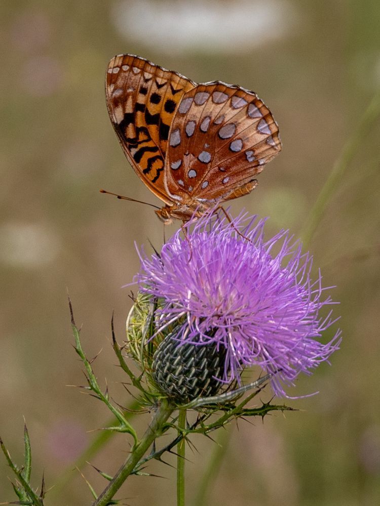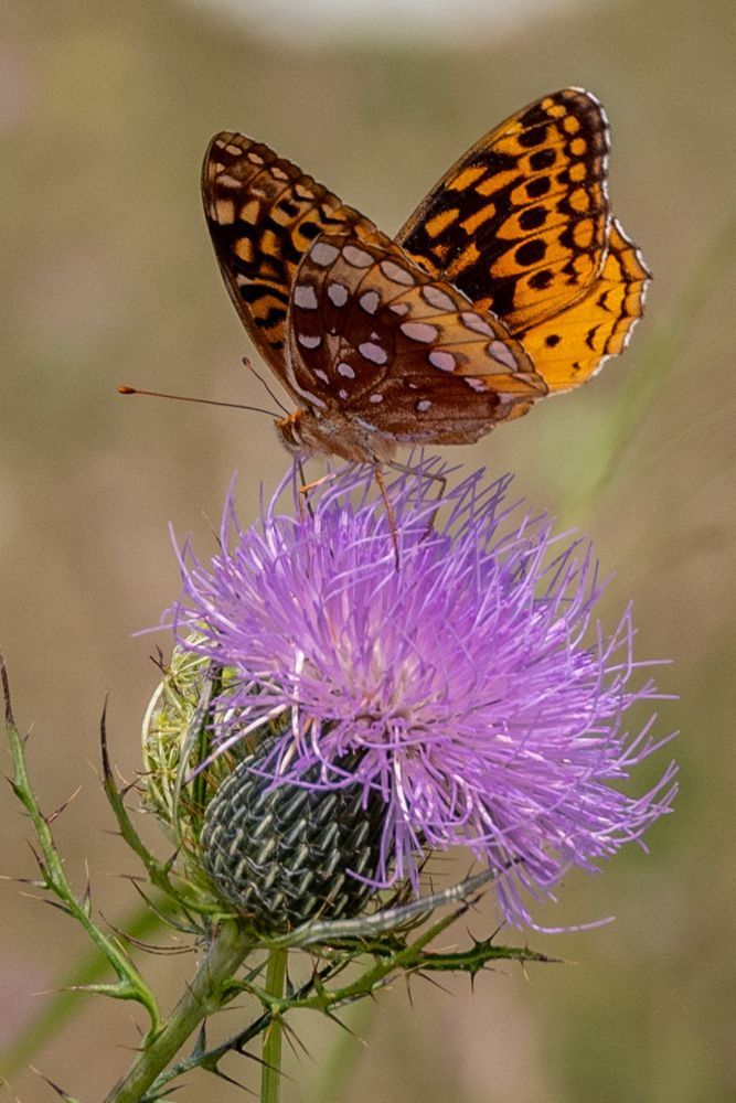 The refuge is mostly wooded but has a few areas of open grassland, and also a lake. The grassland was replete with late season wildflowers, which had attracted many butterflies. Not wanting to step foot off of the road, I photographed them from my car with my long lens. It was twelve miles to the lake, which had several different approaches. I had been told that there was a bald eagle around, and at the second stop I sited him (or her, no way to tell). There is apparently a nest as well, but not visible and I was advised that there were no eaglets this year. The eagle eventually landed, but on the far side of the lake. I was able to capture a few images, but truthfully pretty small in the frame. I think I was lucky to catch him (or her) at all. On the back side of the loop I stopped for more butterflies.