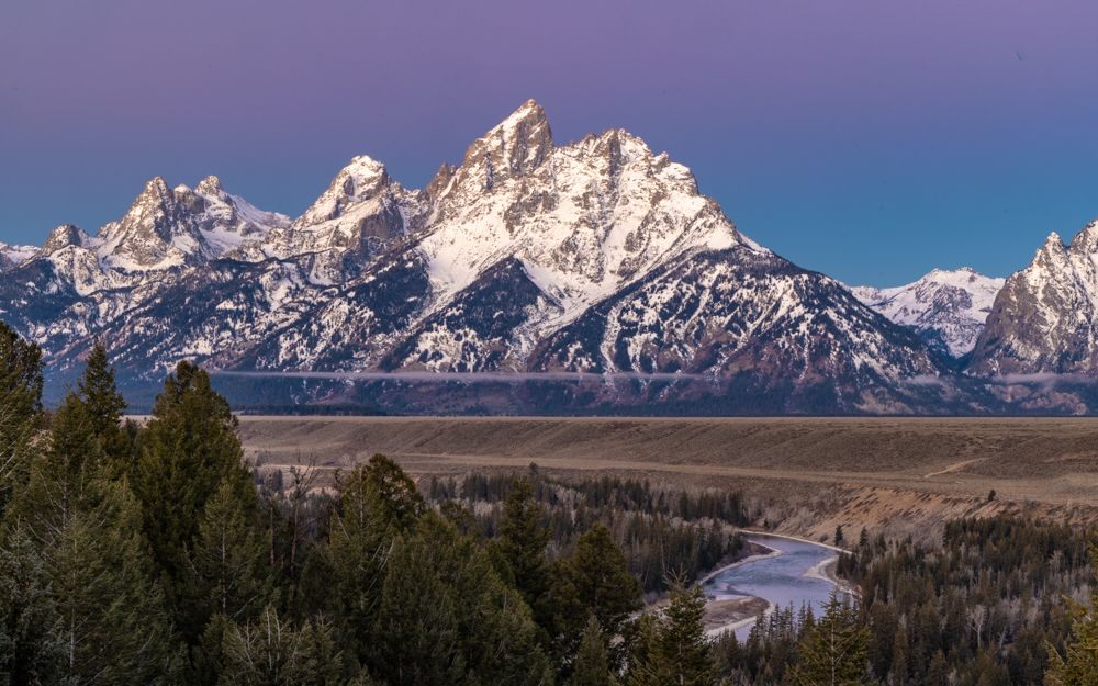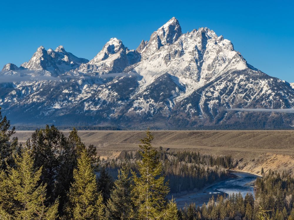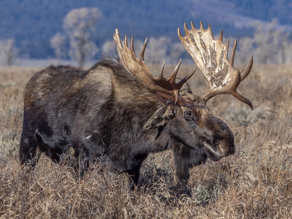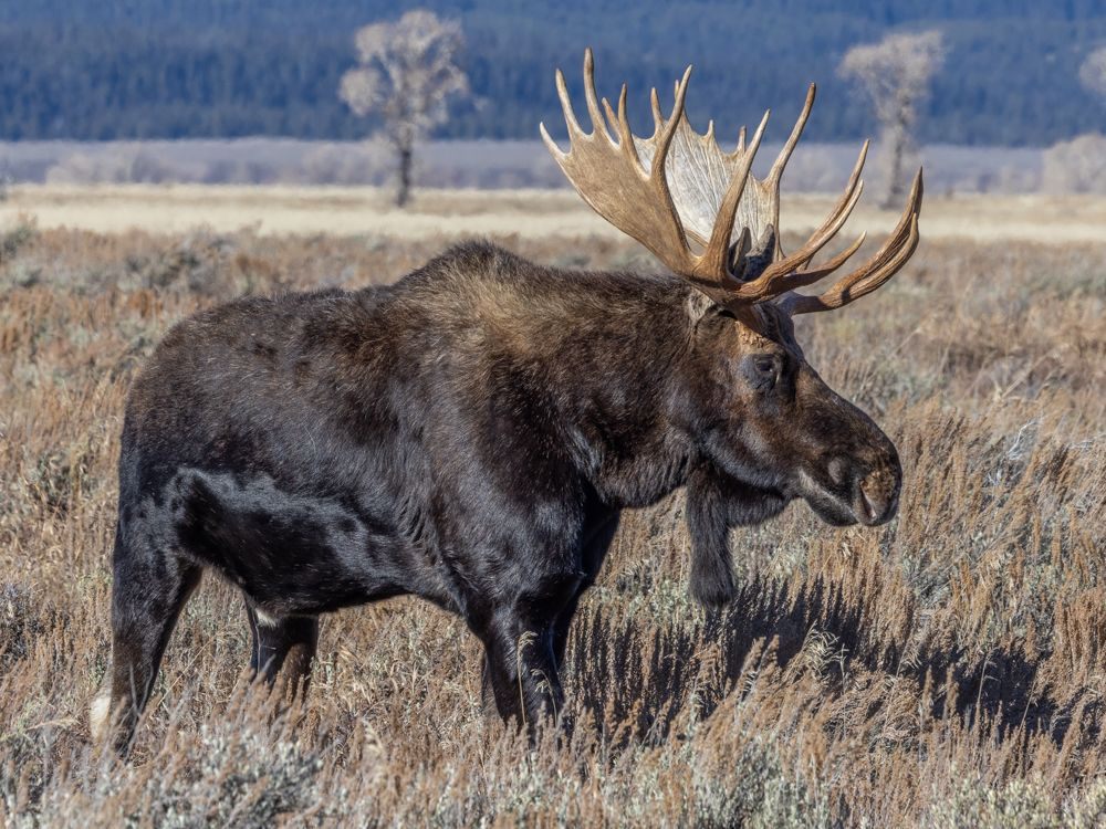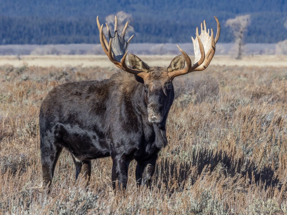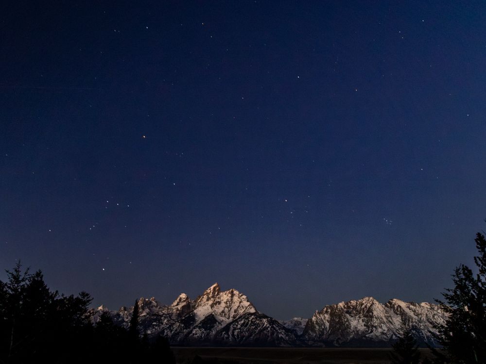 I had two goals for today, to capture a sunrise and find some moose. Sunrise is about 7:15, so I was out the door at 6 AM. I’m up early anyway, so that is not a problem, but I don’t particularly like driving in the dark, and I had a 20 minute drive to the location I had scoped out. Once there, I set up in time to capture a few stars before the sky started lightening. I was disappointed to find clear skies - I had hoped the white fluffy clouds from yesterday might hang around. Regardless, I worked with what I had. This is a famous location as Ansel Adams captured the Snake River against the Teton range as part of his project to photograph wilderness areas for the then nascent National Park service. They had conveniently placed a plaque at the exact location of his photograph. What I noticed was, that in the 60 odd years since it had been taken, the trees had grow up, obscuring the near bend in the river. So it is now, obviously, a different image.