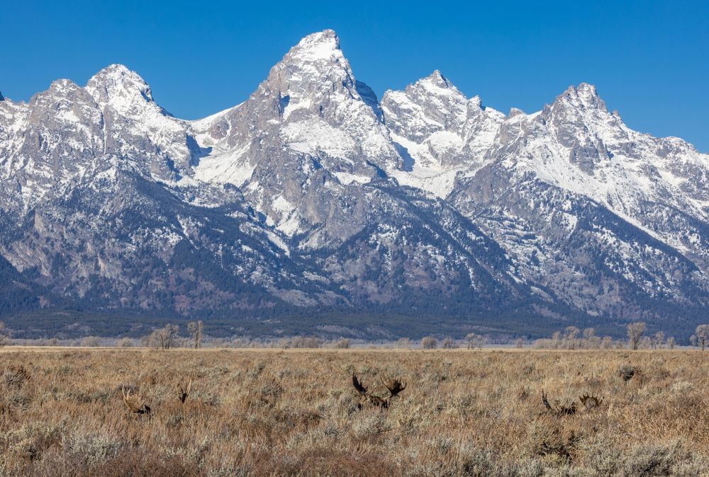 By then it was late afternoon. I decided to drive the short road at the back of the Elk Refuge as bighorn sheep are found here so frequently that there are signs asking you to keep them from licking the salt from vehicle tires. None were out this afternoon, though. So I headed back to my hotel.
