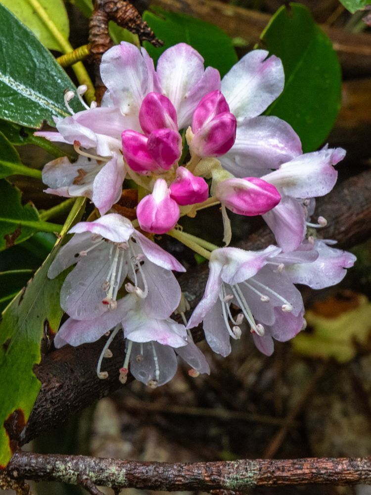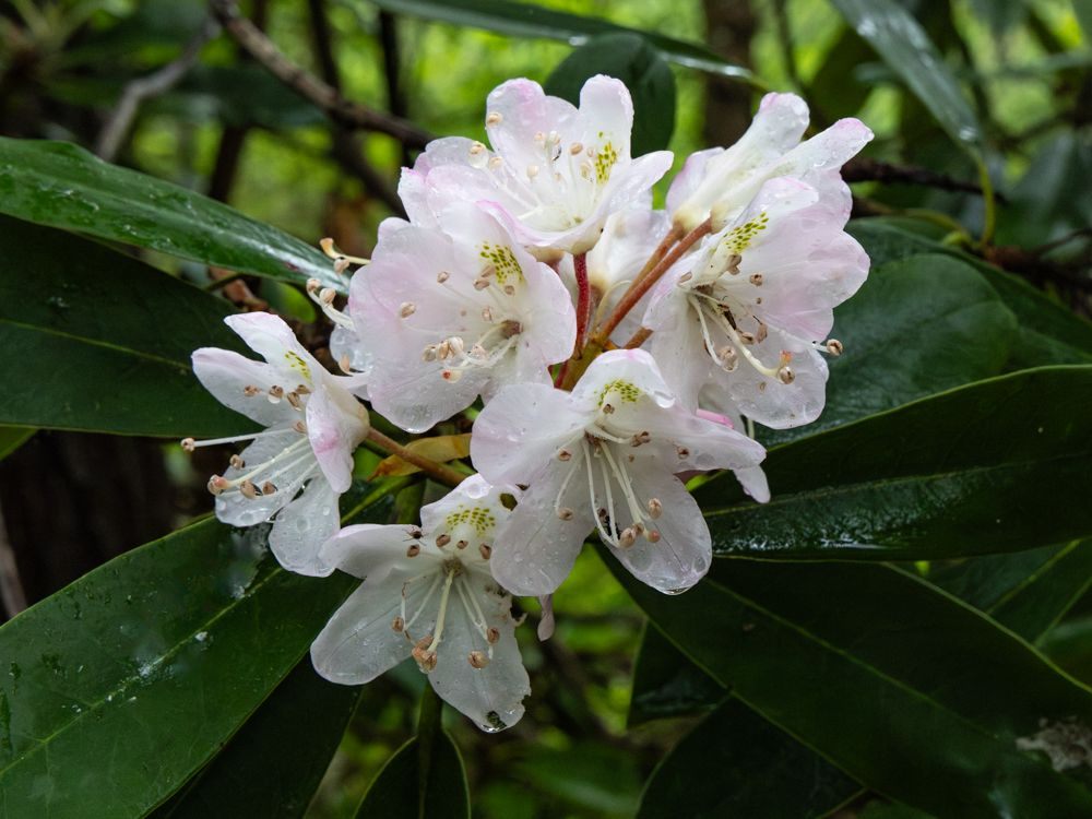 reports I read from a few days ago sounded encouraging. However, when I arrived, the pickings were rather slim. I could see that there were lots of bushes, just very few flowers, and even fewer plants with many blooms. As well, there were literally rivers gushing over the trail from the morning rains. One that I forded sent water over the tops of my boots. The loop was pretty short and, as it was still unclear what the rest of the afternoon would bring, I decided to call it.