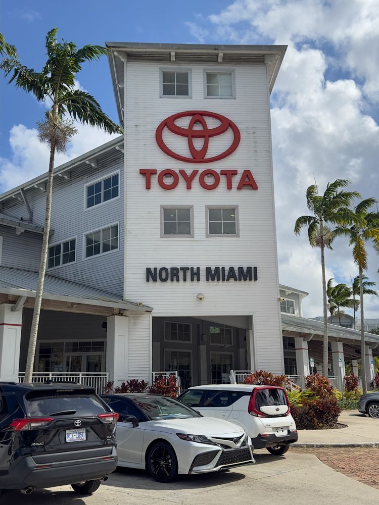 I was looking for reasonably priced gas on the way back up. As you might expect, prices are a bit elevated in the Keys, especially the further South you go. Still under $4.00/gallon, but I did not want to overpay. I stopped at the first gas station I saw that was under $3.50. Unfortunately everyone else had the same idea and it was quite crowded. In trying to avoid a large camper van, I hit my front right bumper on the cement piling at the bottom of a sign. Although I was going probably 3 MPH, I could tell it was a hard hit. I gave up on that gas station, but as I drove away, I saw the now too-familiar VSC family of lights go on and knew I had done something bad. I was not sure how how serious it was. I saw a sign on the next block advertising auto service. It was clearly a local place, with trucks and boats parked out front, and pretty run down. Nevertheless, I stopped to ask them to take a quick look. Roy immediately came out with his portable diagnostic computer and checked it out. He said that the only thing the diagnostic showed was a sensor issue with the steering wheel. He thought it should be OK to drive to Miami, where I had anyway planned to take it to the Toyota Dealer there. I gave him a 20 for his trouble which was the right thing to do for the peace of mind to drive another few hours. I did notice that the steering wheel was canted, which was a clue that something was definitely wrong.