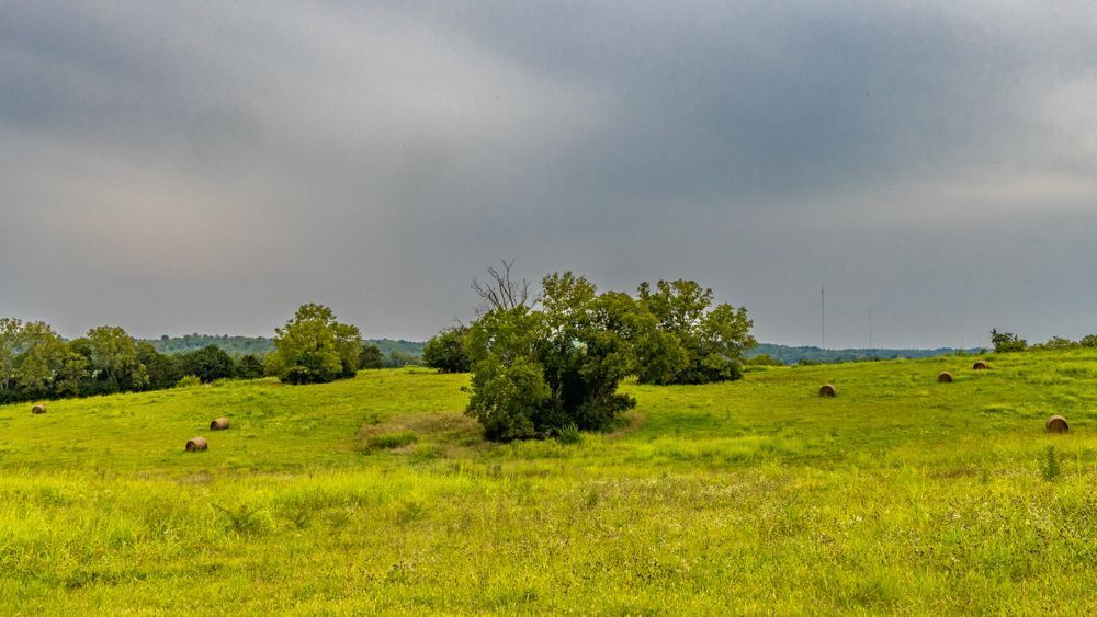 On my way back, I stopped at a large field with trees and hay bales. I was able to pull into the entrance and there were no signs warning me of trespassing. I had just gotten out of the car when a gentlemen came driving out of the field. I went to move my car so he could exit, but he motioned me over. He invited me on to the property and said I could feel free to take photos. Before I could do that, though, we started chatting and it turned out to be an interesting conversation. He immediately noticed my CA plates which led me to tell him about my trip. Note for later reference that of course I mentioned that I was from the Silicon Valley area of CA. Sim then explained to me that this parcel of land - Kettlespring springs - had been in his family for many generations. It was originally 600 acres, now reduced to about 450 acres. And he was looking to sell a few more. It truly is a beautiful piece of property.