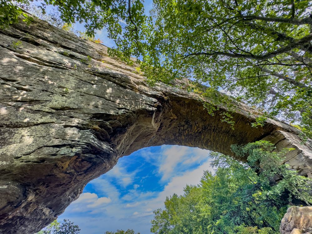 After continuing to the rest of the destinations in Red River Gorge, I decided to stop at Natural Bridge State Park, which is close by, before heading back. This park is known for one major rock formation and mile hike up is required to reach it. What I did not realize until I arrived is that that hike brings you to the arch itself rather than to a point with a view of the arch. I was too close to the formation to capture any decent images and had to resort to an extreme iPhone shot. It is possible to climb some narrow stairs to go up on top of the arch; I decided that was not necessary. Any view would be in harsh afternoon sun and not worth climbing out on a high narrow surface with no railings.