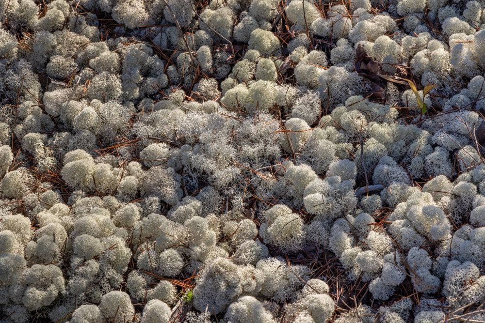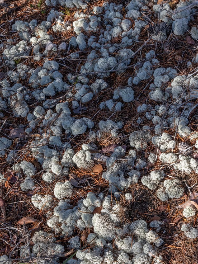 Powderpuff lichen amongst the pine needles in the scrub