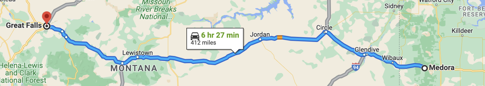 Today I made the relatively long drive to Great Falls, MT. The main attraction of Great Falls is that it is only about a 6 and a half hour nominal drive from Medora. With stops, it was more like 8 hours. It was not a bad day to gain an hour.