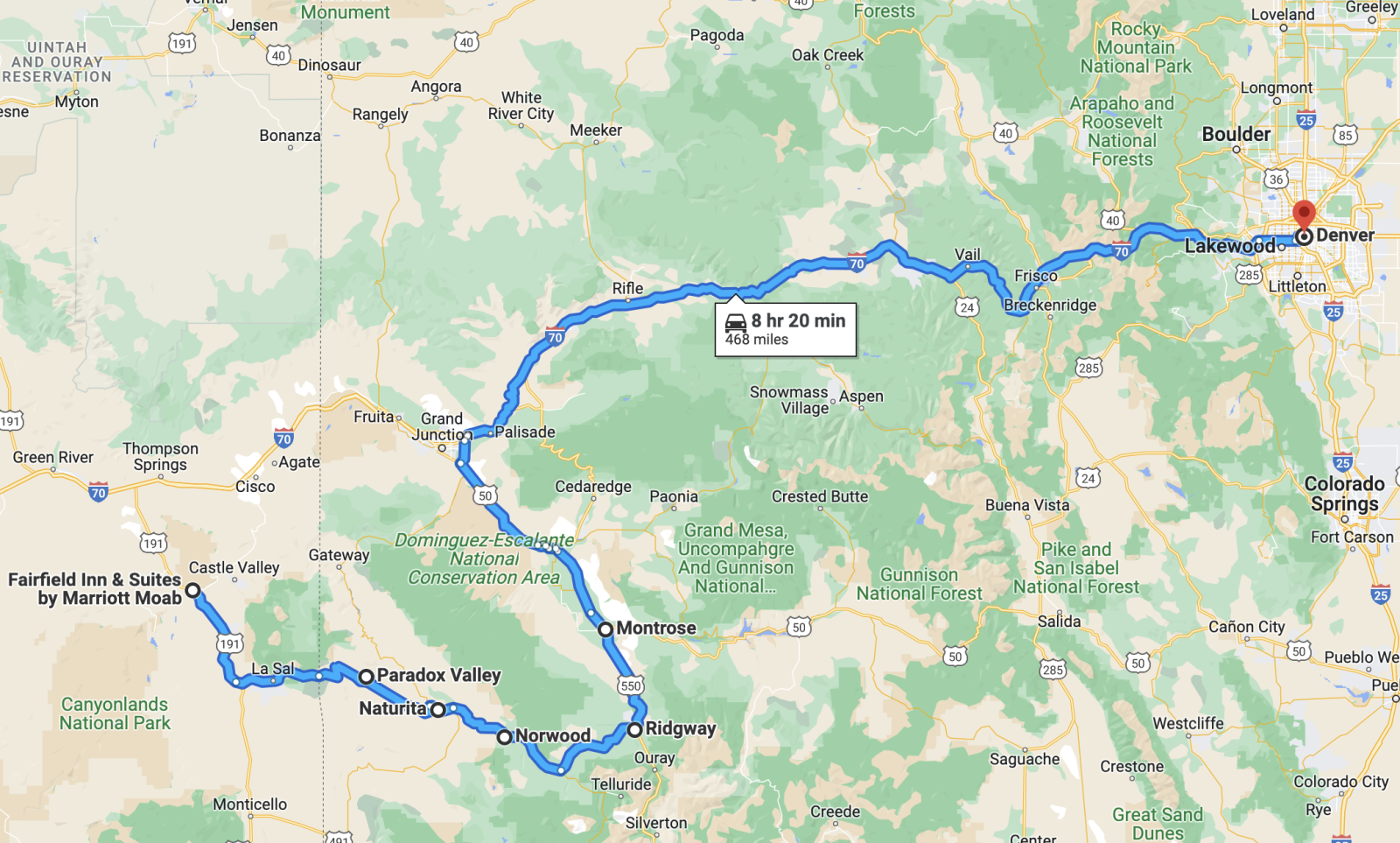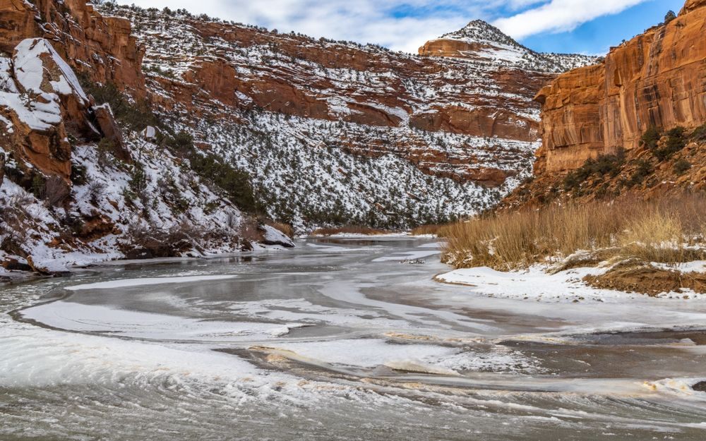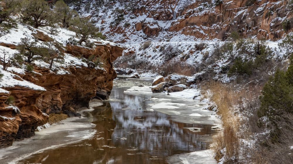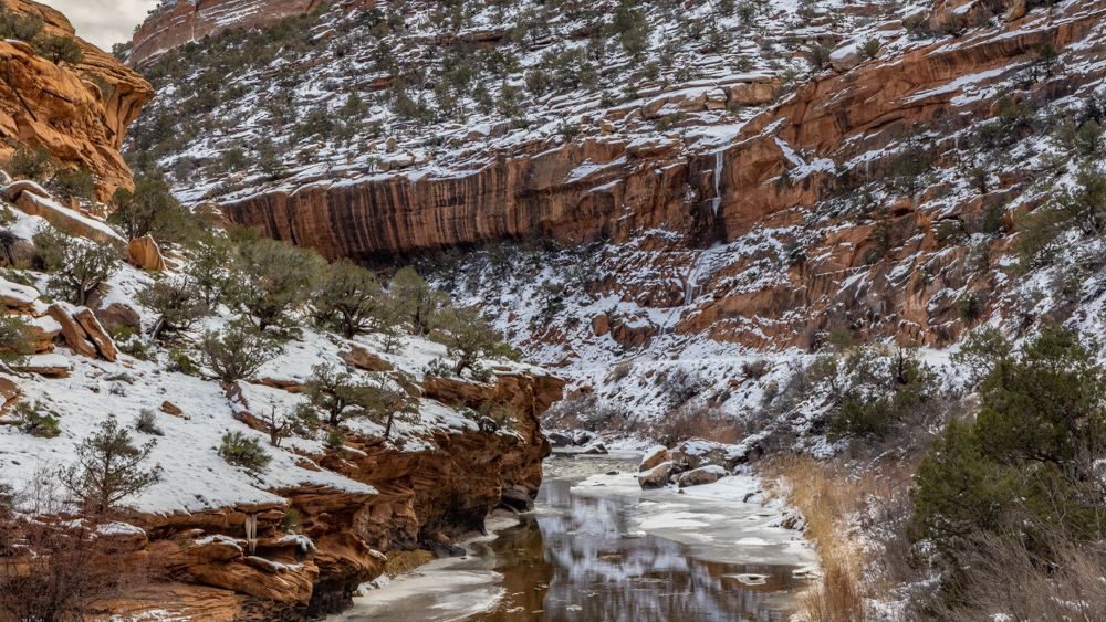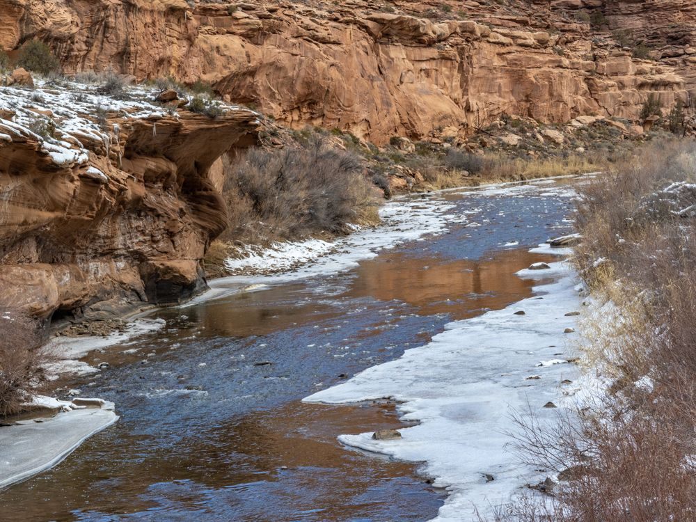 Moving on to State five, Colorado. I could have taken IS 70 direct from Moab to Denver. A scenic route was suggested to me. What is not clear from the map is that the stretch from Paradox to Naturita is 10 miles of dirt road. Covered with snow and ice. Winding around a mountain side. No question it was beautiful. It followed a river the whole way and was surrounded by red rock cliffs also accented with snow. In the end, it was not a problem, and Lucy II handled it beautifully. I was grateful, yet again, for my 4-wheel drive. It was more a matter of not knowing what was around the bend. I posted a short video to give you an idea.