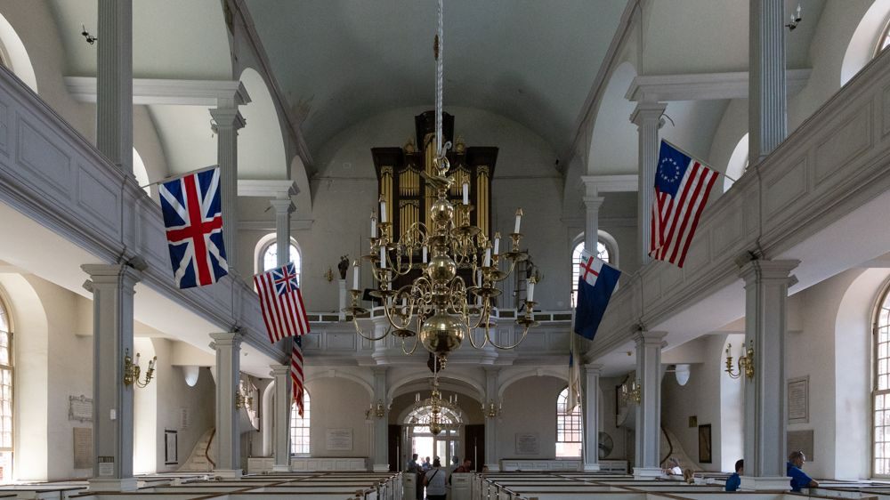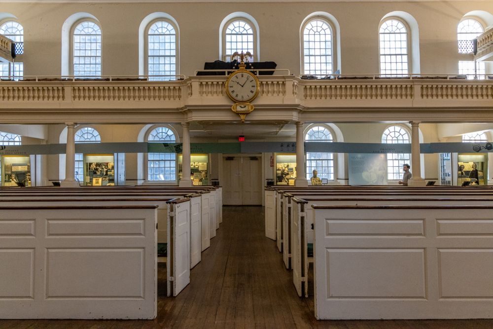 The church was commandeered for different uses over the years. At one point it contained the town granary, a space that was later used to make sails for the USS Constitution. It was nicknamed “Brimstone Corner” for the gunpowder stored there during the war of 1812. Several notables are buried in the Granary burying ground adjacent to the church, including Ben Franklin, Peter Faneuil, John Hancock, Samual Adams and Paul Revere. It also contains monuments to James Otis and the victims of the Boston Massacre.