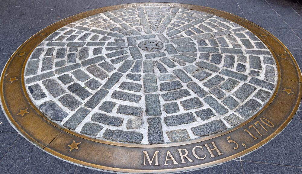 Writs of Assistance ” which was presented in 1761, a full 15 years before independence was declared. From its balcony could be seen the 1770 Boston Massacre, in which five Bostonians were killed by a squad of British Officers. This was the first bloodshed of what would become the American Revolution. It inspired Paul Revere’s factually inaccurate, but effective, “Bloody Massacre” engraving. Ironically, John Adams and Josiah Quincy defended the British massacre soldiers in court and won an acquittal for all but two of them.