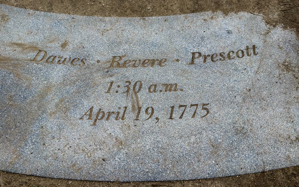 On April 18, 1775, Paul Revere and William Dawes set out from Boston to suss out the route the British troops would be taking and to warn the populace. William Dawes took the Southern overland route and Paul Revere took the Northern route across the Charles River where he then mounted a waiting horse. Revere saw that the British regulars were taking the more direct route across the Charles River to Cambridge - “One if by and, two if by sea.” By prearranged signal, two dimly lit lanterns were shone from the Old North Church tower. Hence began the infamous midnight ride of Paul Revere. We know of this story as
