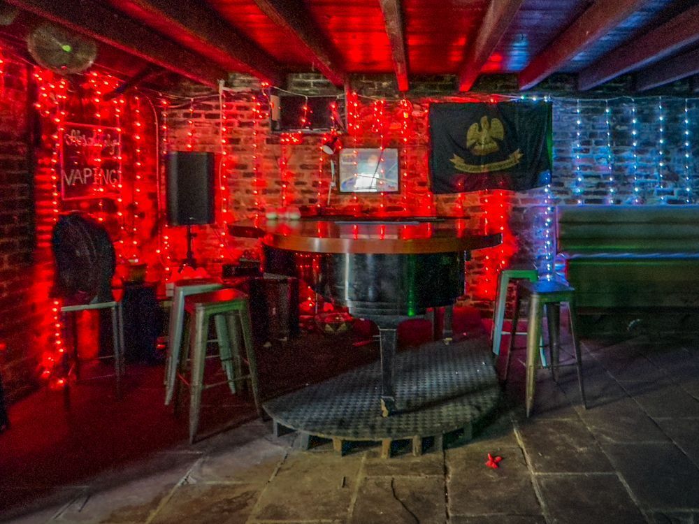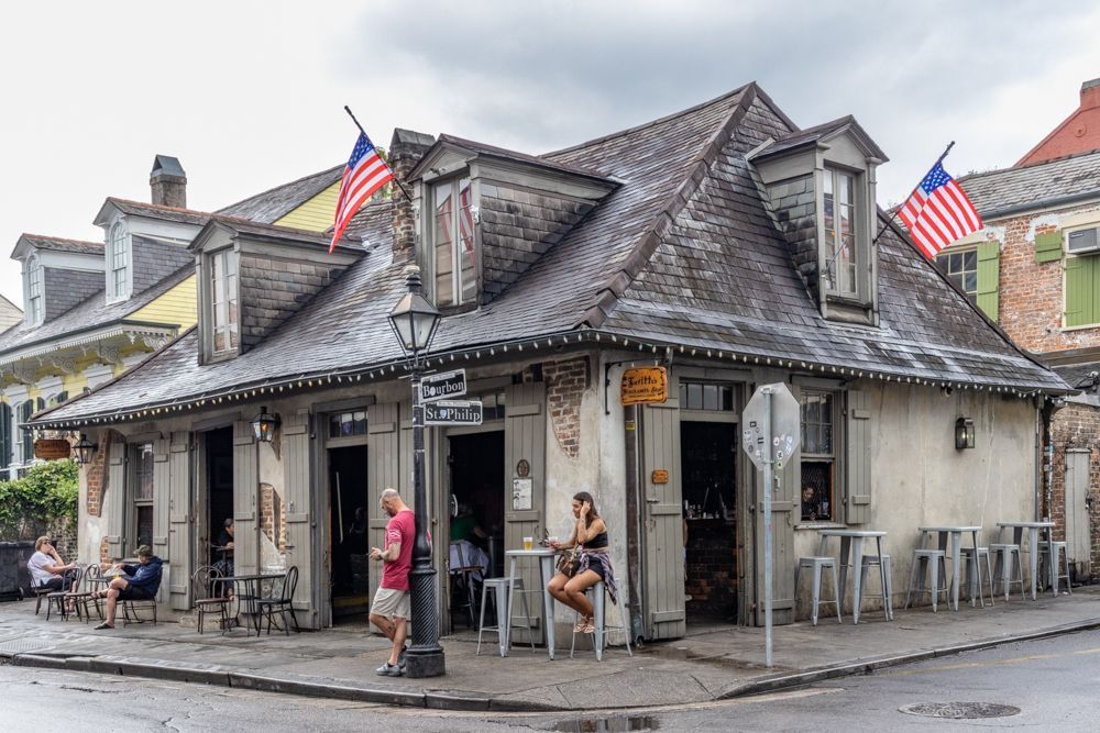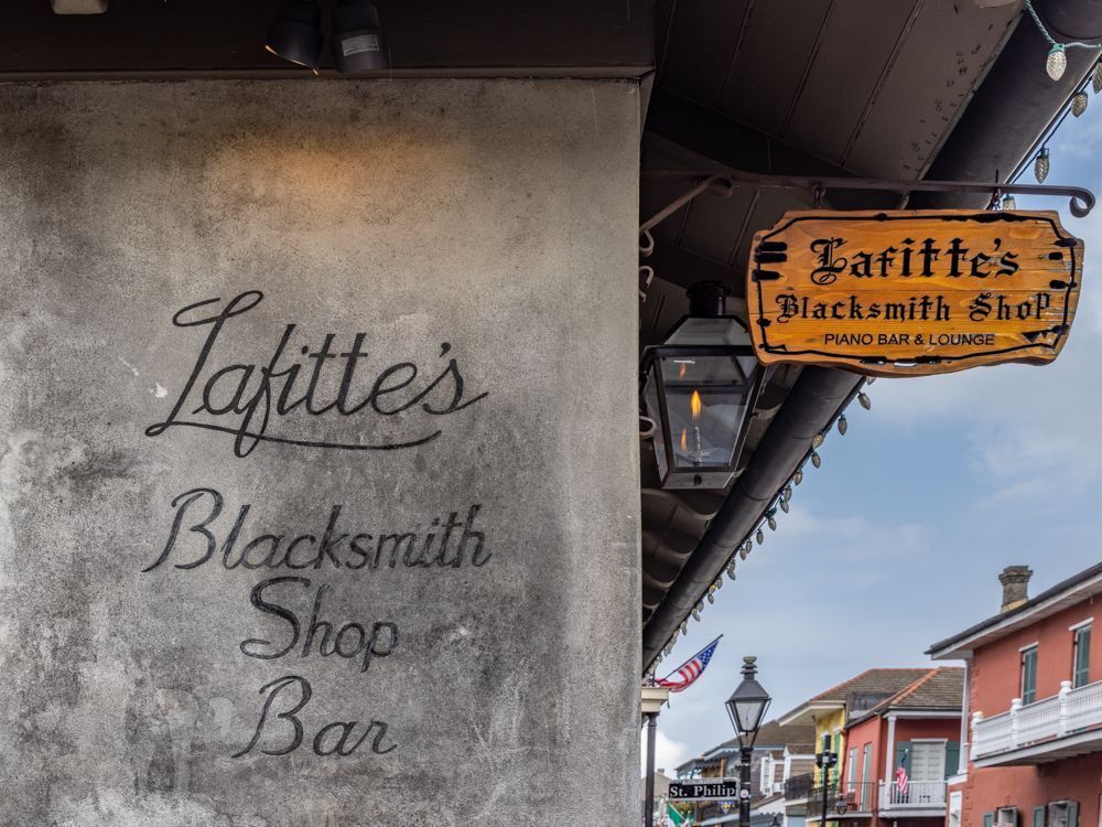 Lafitte’s Blacksmith Shop Bar . According to the website, Jean Lafitte - privateer, entrepreneur, sailor, diplomat, spy, hero of the Battle Of New Orleans - turned the tide by rushing powder, flint, and troops to General Jackson at Chalmette. Yet again, I ran into people I had met previously. The couple from San Francisco I had met last night at the Spotted Cat was sitting at a table and invited me to join them for a drink. We spent a pleasant half hour or so getting to know each other a bit better before we all called it an afternoon.