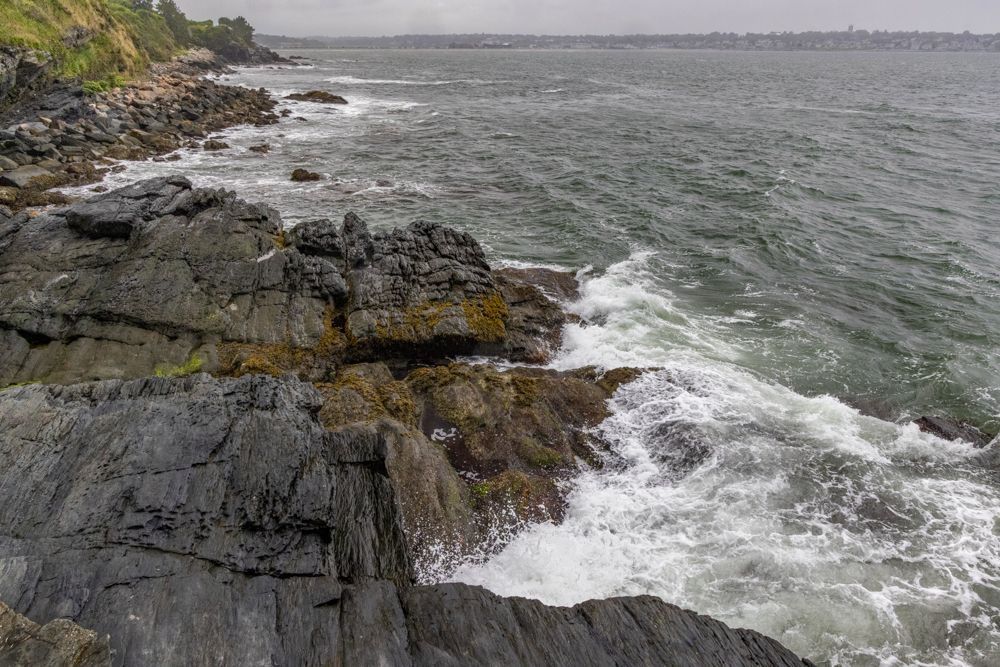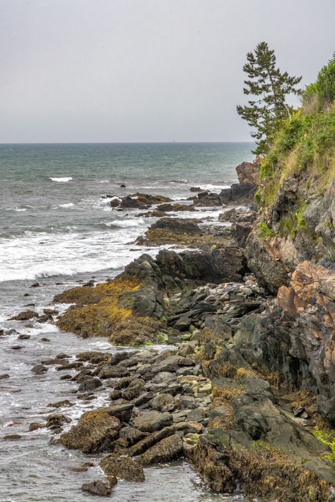 Cliff Walk around the mansion alley. I had already decided to walk an abbreviated portion of the trail. The part at the far tip of the island was advertised as rocky and slippery with no guard rails and a 70 foot drop on one side and poison ivy on the other. Thanks, but no. Nevertheless, after spending $20 to park for a few hours in the transportation center garage, I then had to spend another $25 dollars to park in the Easton Beach parking lot as the few street parking spaces at the beginning of the cliff walk were all filled. Not unexpected on a Sunday afternoon of July 4th weekend. I didn’t mind as I thought I would be leaving the car for several hours, nor did I really have a choice. Rain had been threatening all day and it finally broke before I made it a mile into the walk. In spite of a light rain jacket and small umbrella I soon became completely soaked. The rain shower only lasted about 10 minutes, but at that point I was done. The mansions did not much interest me and the combination of haze and fog meant no visibility for any ocean views. Rain is also predicted tomorrow, and also on Tuesday for the 4th of July. Hopefully it won’t ruin the fireworks display.