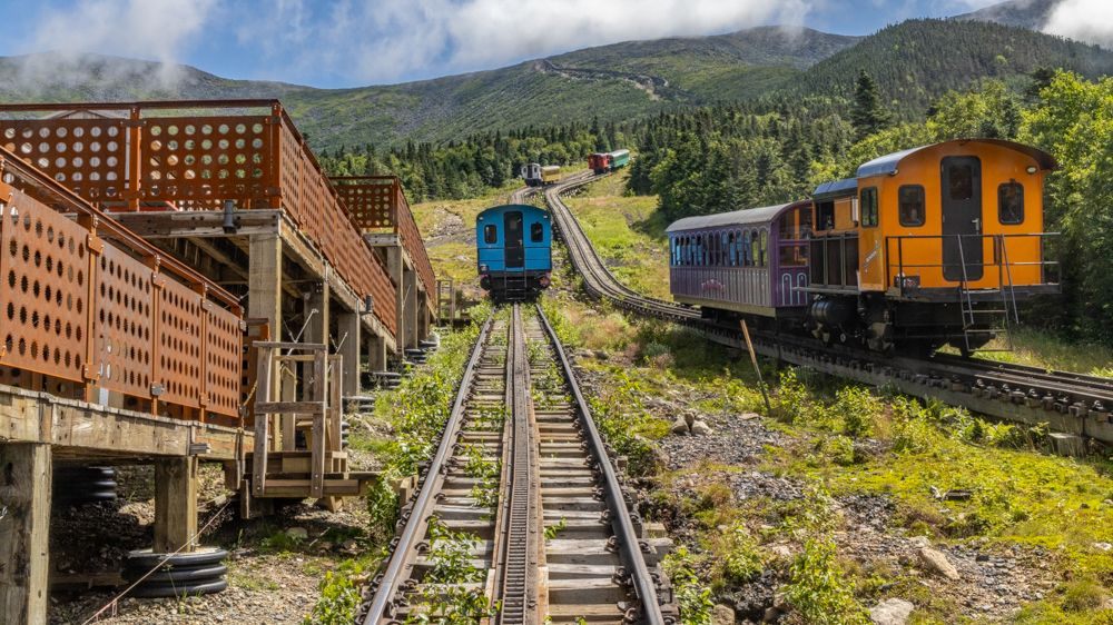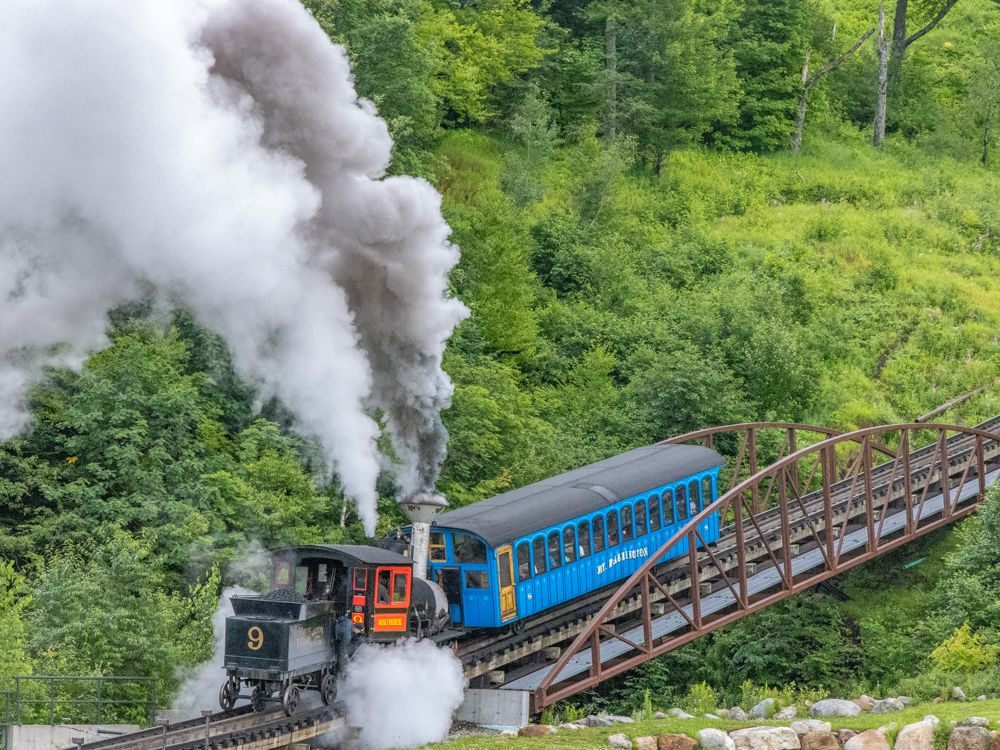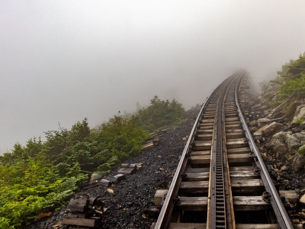 On the way down, I rode the steam engine powered train. You could smell the coal-generated smoke. We were able to see the presidential mountain ranges on both sides and by the time we reached the bottom, the day was sunny and clear.