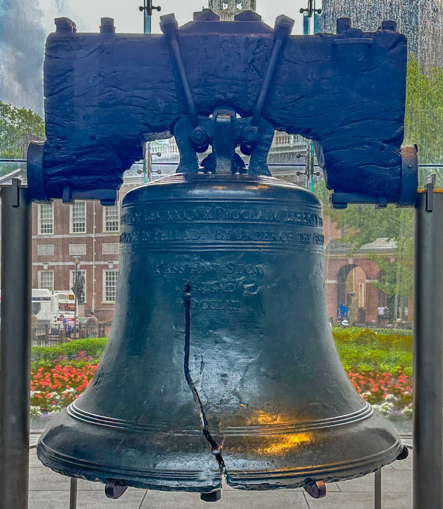 Liberty Bell . The raindrops had started falling, so I took my time in this building to miss the worst of the downpour. This turned out to be fortuitous as Pat, our tour guide from Independence hall was taking a break there before her next assignment. I was able to spend a very pleasant and informative few minutes chatting with her. Like all of these encounters, she was much more forthcoming than during the public presentation.