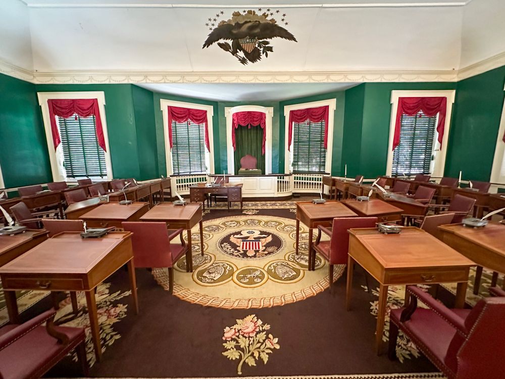 Congress Hall was originally built as the Philadelphia County Courthouse. Again, this building served as the temporary home for the U.S. Congress from 1790-1800, while buildings in Washington D.C. were being constructed. The original Library of Congress was housed in a rather small room on the second floor. Members of the House of Representatives met on the first floor, in very modest surroundings, while the Senators met upstairs, in a much more lavishly furnished room. Originally